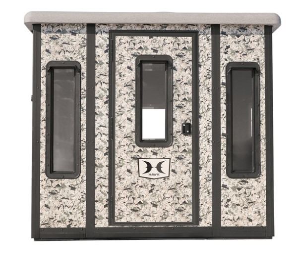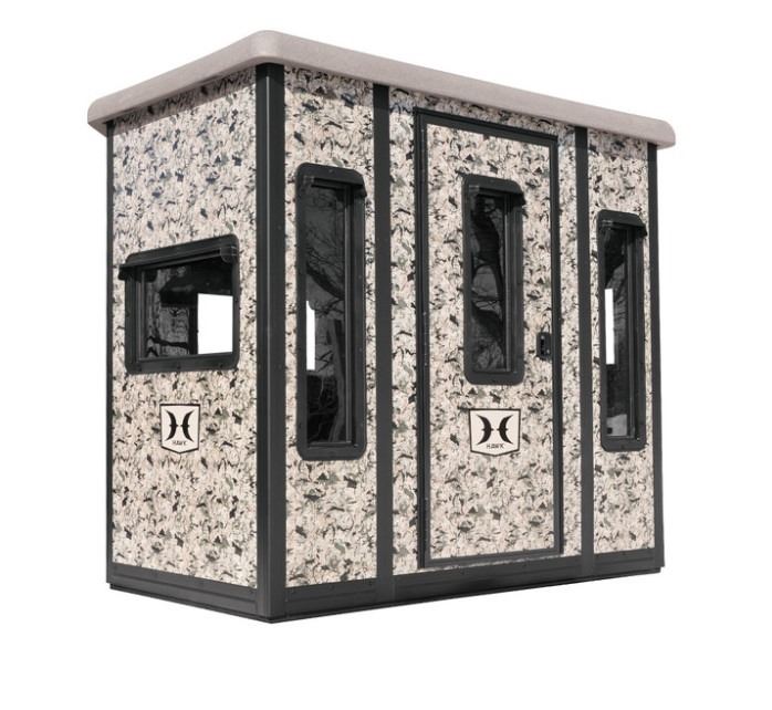 The Hawk ‘The Compound’ Box Blind is the ultimate box blind for serious hunters who want the best of the best and want enough room to take the entire family. The Compound is made to last as it is built of steel surfaces on the inside and out. Chaos printed insulated steel panels as well as a steel insulated floor give the Compound blind unmatched thermal, scent, and noise control. The steel floor is not only insulated, but includes a foam pad which is sound deadening to keep you from being detected even if you happen to drop gear. One hand operable silent windows are made of residential glass and are plenty large enough to shoot a bow out of. A one piece roto-molded window frame with eaves will keep hunters dry even in the most adverse conditions. The Hawk Compound Box Blind measures 87”W x 69”D x 78”T and ships fully assembled and field ready. Multiple tower combo options can be purchased as well. Hawk box blinds come with a limited lifetime warranty.