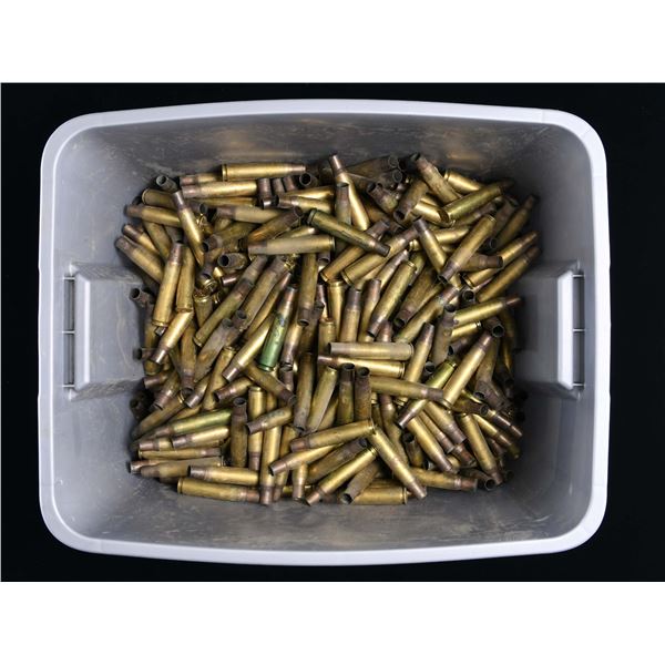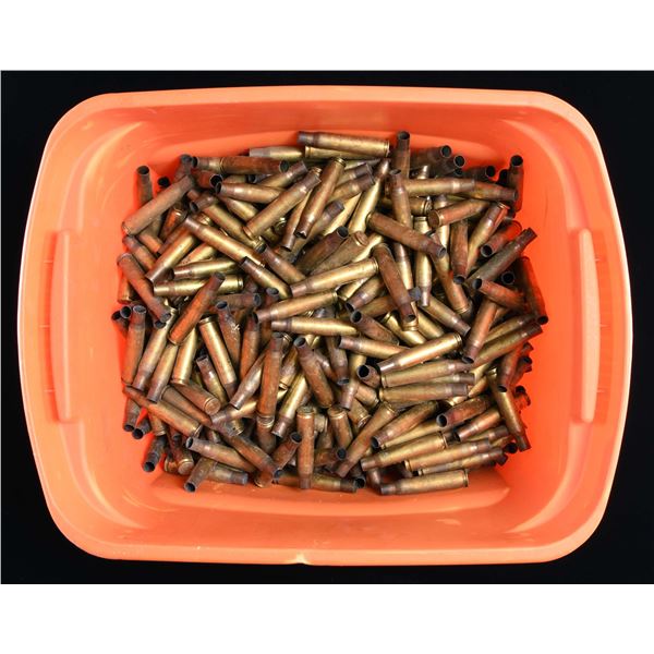 CASES. Lot of 4 totes of assorted fired .50 BMG cartridge cases. Cases exhibit a variety of head stamps. CONDITION: good, with links exhibiting varying degrees of patina. Some cases exhibit some dings and marks from handling and storage. PROVENANCE: From the Estate of Ivan Lee Shapiro. (02-23495-57/MLW). $1,000-1,500.