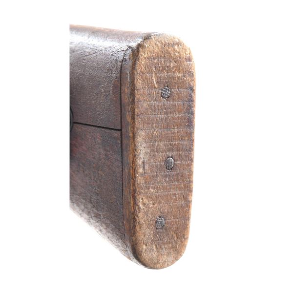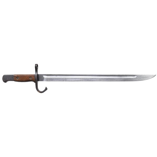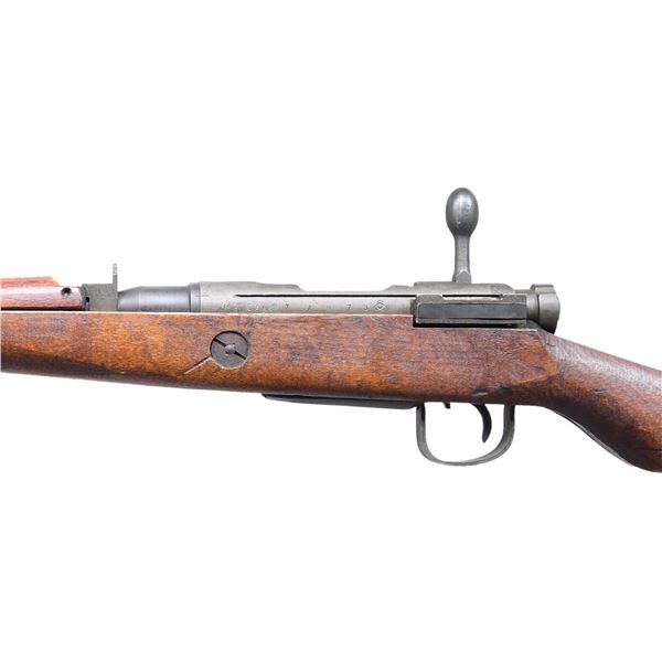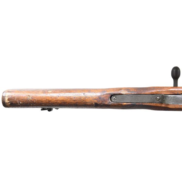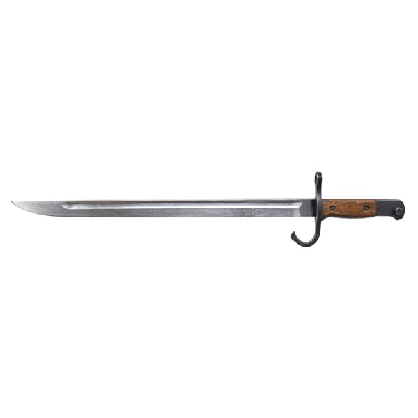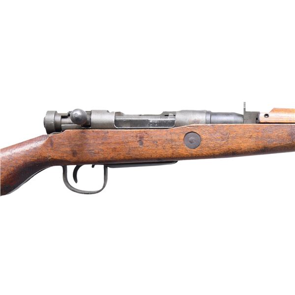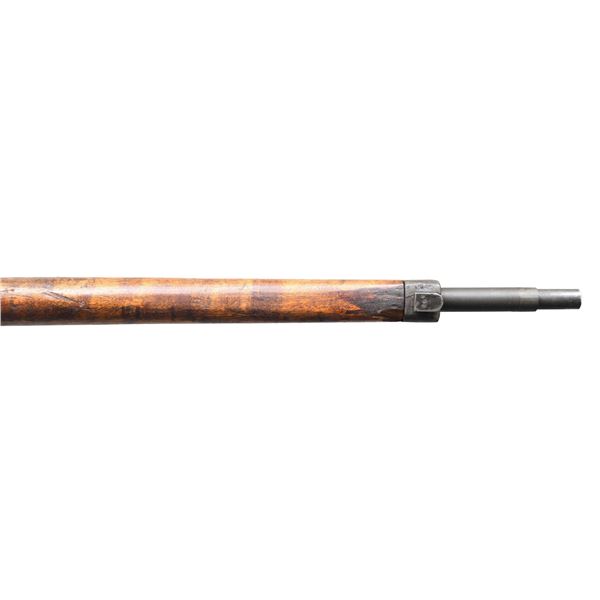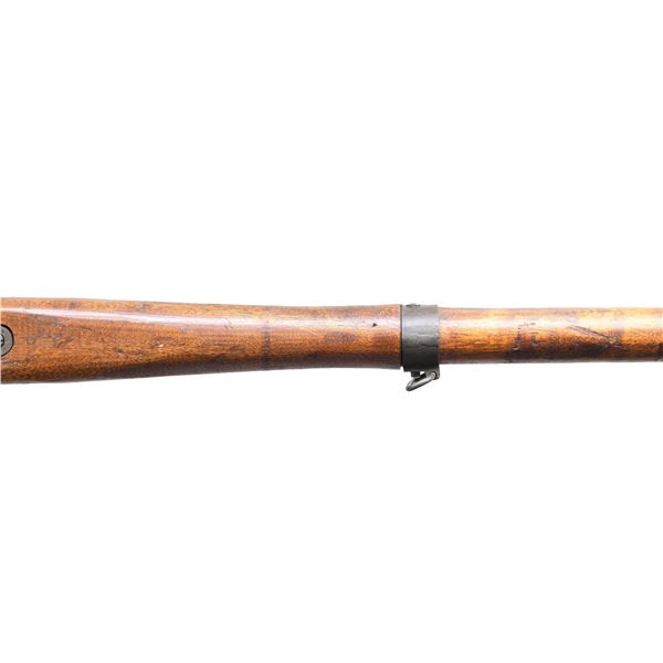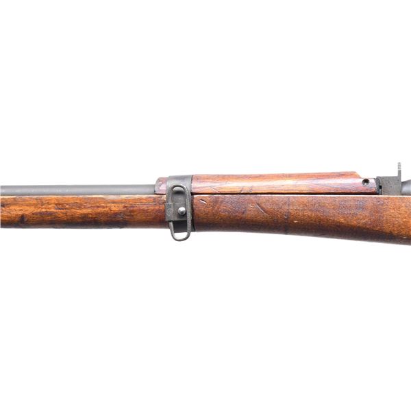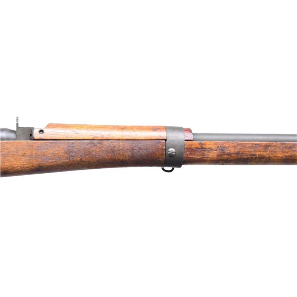 ACTION RIFLE. Cal. 30-06. S# 71873. Bbl. 25 1/2". Blade front sight without protective ears. Fixed aperture rear sight. All numbered parts are matching to receiver including firing pin. Type 99 Arisaka rifle converted to 30-06 for use by South Korean forces during the Korean War. Receiver top is notched for 30-06 & has ground mum. Left side of receiver has serial number, Kokura & "US CAL .30" markings. Arsenal rework parkerized finish. Asian hardwood stock set with two piece butt & left side sling swivels. Stock also has seperate forend & no provision for a cleaning rod hole. UNATTACHED ACCESSORIES: Jinsen made Type 30 bayonet without scabbard in very good condition. Bayonet has brightly finished blade & hooked crossguard. CONDITION: stock set shows some improper band removal wear, a small crack on handguard, some chipping, scattered flaking, dings & handling marks. Metal retains 70% arsenal rework parkerized finish with scattered edge wear, fading & light oxidation. Action functions properly when hand cycled. Very good bright bore. (25-485/MJC). CURIO. $300-400.