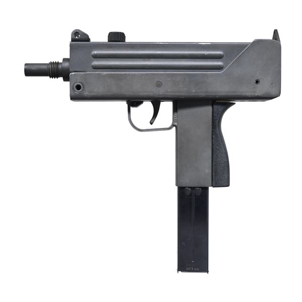 PISTOL. Cal. 9mm Parabellum. S# SAP94815. Bbl. 6" threaded. There are very few firearms that conjure up the imagination of the general public more than the mere mention of the MAC 10. The Ingram Model 10 was originally designed in 1964. It would become the 1st of many small simplistic SMGs to contrast the expensive & labor intensive earlier variants such as the Thompson & Reising M50. Ingram's 2 basic guidelines while designing the Model 10 "simple & cheap" while remaining effective & reliable. Made famous mostly by Hollywood, the M10 had appearances on the silver screen & on television eventually earning the infamous title of "The Gun That Made The 80's Roar" starting w/ John Wayne utilizing a suppressed 9mm M10 in the 1974 movie "McQ". A favorite example used by the organized anti-gun movement, the Mac 10 was eventually, incorrectly & inaccurately synonymous w/ every crime committed for a long period of time. The semiautomatic M10 was originally offered in semi auto as an open bolt system just like its predecessor the M10 SMG. The BATF determined that the open bolt semi autos met the criteria of a machine gun under the "readily restorable" clause & banned future manufacture, grandfathering those that were assembled and in commerce on or before June 21, 1982 under ATF ruling 82-8. Like everything else, the Federal Government tells citizens they can not have, interest in these early originals immediately skyrocketed & they have been considered highly prized collectibles for almost 40 years now. This is an awesome example of that early operating mechanism. Uniform parkerized finish on both upper & lower receivers, this is a factory 9mm Parabellum variant manufactured by RPB Industries in Atlanta, GA. These pistols are very familiar to the SMG in both operation & aesthetics w/ only a few differences. Outwardly, the slots for the SMG shoulder stock are not milled in the backplate, and the selector lever on the left side is absent. Sights consist of a protected post front, and a fixed rear peep, consisting of a raised extension of the back plate. The slotted cocking knob is nestled between the sights. Safety is in the front section of the trigger guard. The self-loading operating system is blowback operated and fires from an open bolt. It utilizes a fixed firing pin, integral to the bolt face. Right side of receiver is marked w/ the familiar Cobray snake & globe logo and the following stamping: "M10. CAL 9MM PAR / RPB INDUSTRIES, INC. / ATLANTA, GA. U.S.A." as well as the selector markings; "SAFE" & "FIRE" above the trigger guard. Stamped in smaller letters, before "M10" is the letter "S", to more easily differentiate it from the full auto variant. MAGS: 1 steel 36rd. CONDITION: Finish coverage remains complete & consistent w/ a little thinning on a few high spots as well as some typical drag lines. Bore is bright & good rifling. Fire control mechanism appears to function correctly when cycled by hand. PROVENANCE: Lifelong Collection of Terrence McCarty. (24-231/JZ). MODERN. $500-900..
