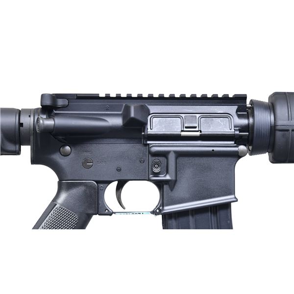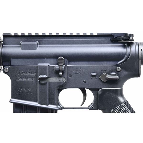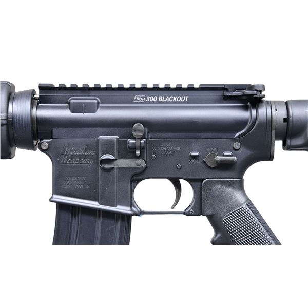 AUTOMATIC RIFLES WITH HARD CASES. 1) Cal. 300 Blackout. S# YE034670. Bbl. 16 1/2". Model WW-15 semi-automatic rifle mfg. by Windham Weaponry. Left side of the receiver exhibits standard markings denoting the S#, model and cal. designations, as well as Windham's mfg. information. Left side of the receiver is marked with a boxed "WW", followed by "300 BLACKOUT". Top of the bbl. is marked "WW .300 BLACKOUT 1/7". Aluminum receiver and flat top upper exhibit a matte black finish, with the bbl. and gas block exhibiting a parkerized finish. Black polymer adj. buttstock, with A2 pattern checkered pistol grip, and short ribbed handguards. MAGS: 1 factory aluminum 30-rd. UNATTACHED ACCESSORIES: black plastic hard case. CONDITION: near new, with metal components retaining virtually all of their original factory finishes overall. Front sling loop retains its original factory hang tag. Brilliant mirror chrome lined bore, retaining well defined rifling throughout. Polymer furniture is excellent overall. (24-7048/MLW). MODERN. 2) Cal. 5.56mm. S# YE034668. Bbl. 16 1/2". Model WW-15 semi-automatic rifle mfg. by Windham Weaponry. Left side of the receiver exhibits standard markings stipulating the S#, model and cal. designations, as well as Windham's mfg. information. Top of the M4 profile bbl. is marked "WW 5.56 1/9". Aluminum receiver and flat top upper exhibit a matte black finish, with the bbl. and gas block exhibiting a parkerized finish. Black polymer adj. buttstock, with A2 pattern checkered pistol grip, and short ribbed handguards. MAGS: 1 factory aluminum 30-rd. UNATTACHED ACCESSORIES: matching cardboard box, containing a black plastic hard case. CONDITION: near new, with metal components retaining virtually all of their original factory finishes overall. Front sling loop retains its factory hang tag. Brilliant mirror chrome lined bore, retaining well defined rifling throughout. Black polymer furniture is excellent overall. Box shows some light to mild exterior wear, but otherwise remains sturdy and serviceable. (24-7058/MLW). MODERN. $800-1,200.