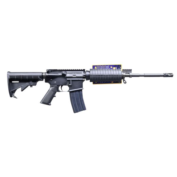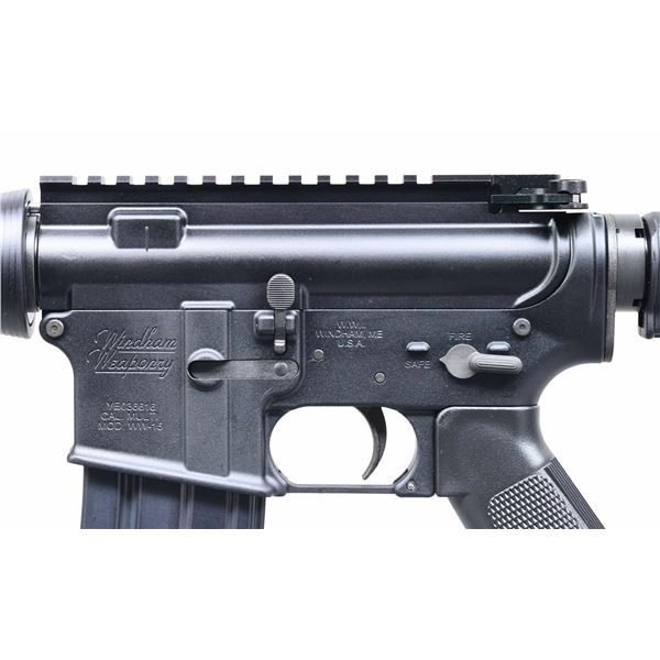 AUTOMATIC RIFLES WITH MATCHING BOXES. 1) Cal. 5.56mm. S# YE036615. Bbl. 16". Model WW-15 semi-automatic rifle mfg. by Windham Weaponry. Left side of the receiver exhibits the usual markings, stipulating Windham's mfg. information, the model and cal. designations, as well as the S#. Top of the M4 profile bbl. is marked "WW 5.56 1/9". Aluminum receiver and flat-top upper assembly exhibit a matte black finish, with the bbl. and gas block exhibiting a parkerized finish. Black polymer collapsible buttstock with A2 pattern pistol grip and short ribbed handguard. MAGS: One aluminum 30-rd. UNATTACHED ACCESSORIES: Black plastic hard case with matching cardboard box. CONDITION: Near new, with metal components retaining virtually all of their original factory finishes overall. Front sling loop retains its Windham Weaponry tag. Mirror chrome-lined bore, retaining well-defined rifling throughout. Black polymer furniture is excellent. Box shows some light exterior wear from handling and storage, but otherwise remains sturdy and serviceable. (24-7066/MLW). MODERN. 2) Cal. 5.56mm. S# YE036616. Bbl. 16 1/2". Model WW-15 semi-automatic rifle mfg. by Windham Weaponry. Left side of the receiver exhibits standard markings stipulating the S#, model and cal. designations, as well as Windham's mfg. information. Top of the M4 profile bbl. is marked "WW 5.56 1/9". Aluminum receiver and flat top upper exhibit a matte black finish, with the bbl. and gas block exhibiting a parkerized finish. Black polymer adj. buttstock, with A2 pattern checkered pistol grip, and short ribbed forend. MAGS: 1 factory aluminum 30-rd. UNATTACHED ACCESSORIES: matching cardboard box, containing a black plastic hard case. CONDITION: near new, with metal components retaining virtually all of their original factory finishes overall. Front sling loop retains its original factory hang tag. Brilliant mirror chrome lined bore, retaining well defined rifling throughout. Black polymer furniture is excellent overall. Box shows some light to mild wear from handling and storage, but otherwise remains sturdy and serviceable. (24-7069/MLW). MODERN. $800-1,200.
