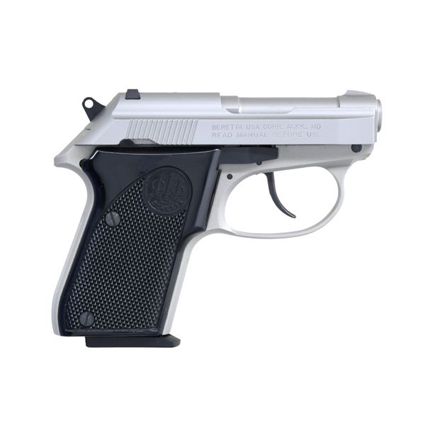 Cal. 32 ACP. S# DAA268586. Bbl. 2 3/8". Blade front sight. Fixed rear sight. Maryland made 3032 Tomcat pistol. "Inox" stainless finish. Checkered black grips with Beretta monograms. MAGS: 2-7 rd. UNATTACHED ACCESSORIES: matching numbered factory in fair condition with trigger lock, manual & hardcase. CONDITION: metal & grips show light handling & usage wear. Action functions properly when hand cycled. Bright near excellent bore. (25-651/MJC). MODERN. $400-600.
