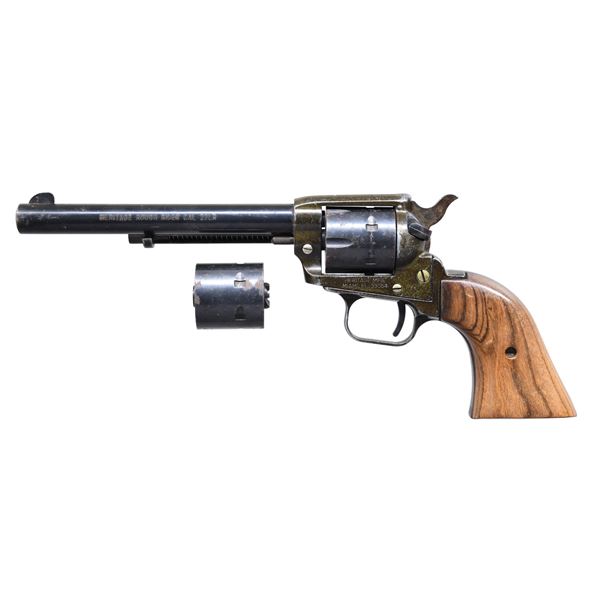 1) HI POINT CF SEMI AUTO PISTOL. Cal. 380 ACP. S# P702288. Bbl. 3 3/8". White Outline sights. Matte black slide with stainless stripe. Gray polymer frame. Grooved black grips. MAGS: 1-8 rd. CONDITION: grips & frame show some handling wear. Slide shows scattered edge wear & flaking. Trigger not cocking when slide is cycled & safety not engaging. Very good bore. (25-579/MJC). 2) HERITAGE ARMS ROUGH RIDER SA REVOLVER. Cal. 22 LR/22 Mag. S# HZ01824. Bbl. 6 1/2". Blade front sight. Fixed rear sight. Blued cyl. & bbl. Alloy frame. Hardwood grips. CONDITION: grips show scattered handling marks. Bbl. & cyl retain most of their blue with scattered oxidation, scratches & edge wear. Other parts are mostly a plum color with scattered oxidation & flaking. Action appears to function properly when hand cycled. Very good bore. (25-586/MJC). BOTH MODERN. $200-450 for pair.