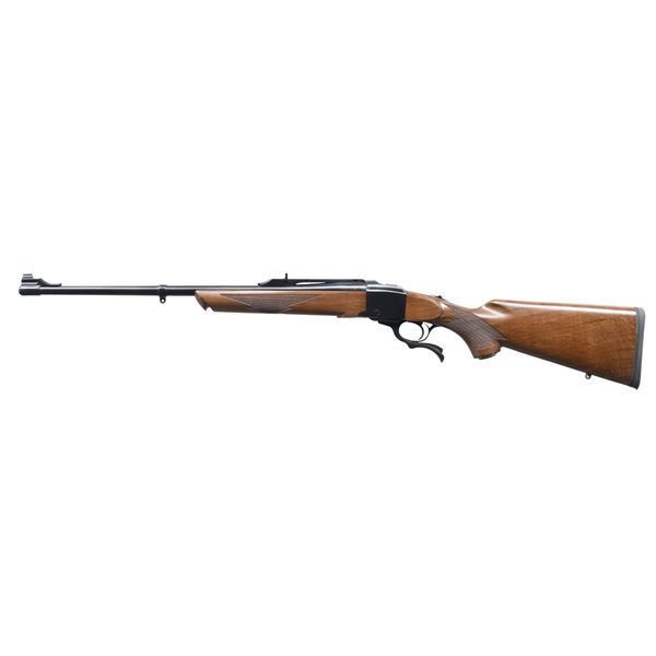 Cal. 7mm-08 Rem. S# 134-47143. Bbl. 22" with banded user changeable brass bead front sight plus folding leaf rear on factory quarter rib machined for Ruger scope rings. Mfg. 2016 as Model 11390 having checkered walnut stock set (Alex Henry forend), grip cap, sling studs and black rubber pad. UNATTACHED ACCESSORIES: matching numbered factory box with packaging to include 1" factory scope rings. CONDITION: all aspects near excellent with new, unfired appearance. (24-3233/NW). MODERN. $800-1,200.