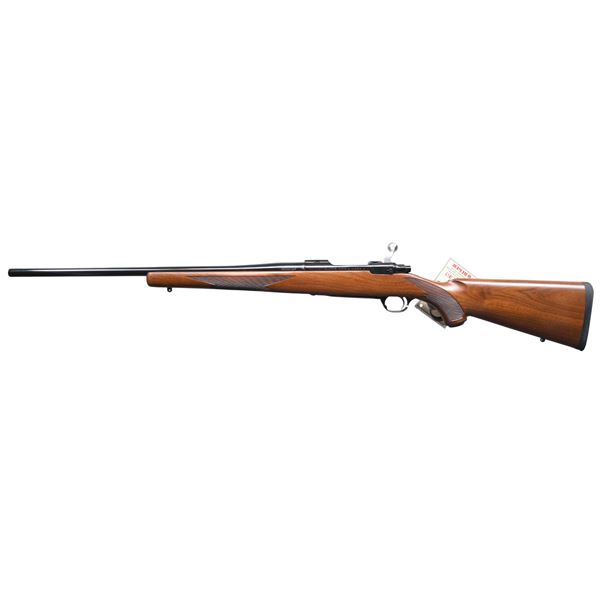 RIFLE. Cal. 350 Rem. Mag. S# 789-69347. Bbl. 22" without provision for sights. Mfg. 2005 (2004-2006) as M77R MKII (Model number 17858) having checkered walnut stock with black rubber pad, grip cap and sling studs. UNATTACHED ACCESSORIES: matching numbered factory box with packaging to include scope rings. CONDITION: all aspects near excellent with new, unfired appearance. (24-3723/NW). MODERN. $650-900.