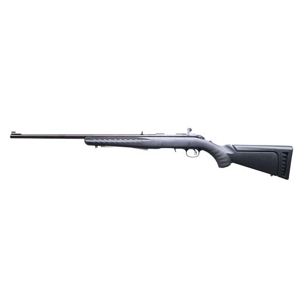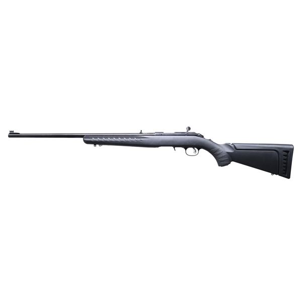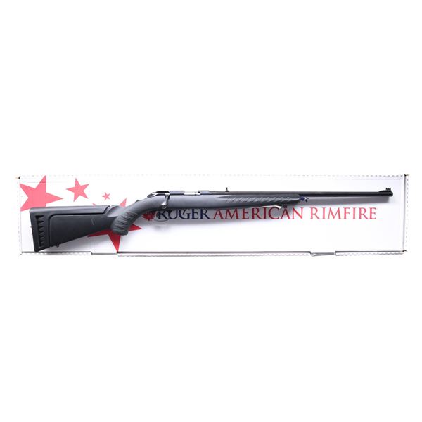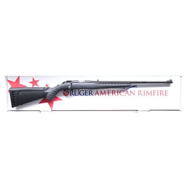 MATCHING FACTORY BOXES. 1) Cal. 22 LR. S# 833-58344. Bbl. 22". American bolt action rifle chambered in .22 LR mfg. by Ruger in 2016. Top of the bbl. is marked with Ruger's mfg. information, with the cal. designation marked on the left, towards the breech. Left side of the receiver is marked with the S#, followed by the Ruger logo, as well as "RUGER AMERICAN". Metal components exhibit a blue finish overall, save for on the bolt body, which is polished in-the-white. 1-piece textured black synthetic pistol grip buttstock. Green fiber optic blade front sight, with flip-up U-notch rear sight. MAGS: 1 10-rd. UNATTACHED ACCESSORIES: matching factory box, containing an additional stock module. CONDITION: very good, with metal components retaining bountiful amounts of their original factory blue finish overall. Mirror bore, exhibiting well defined rifling throughout. Bolt and muzzle crown exhibit some carbon build up from prior use. Stock is very good, showing some light handling marks. Box shows some exterior wear, and a couple of tears, but otherwise remains sturdy and serviceable. (24-7074/MLW). MODERN. 2) Cal. 22 LR. S# 833-58403. Bbl. 22". American bolt action rifle chambered in .22 LR mfg. by Ruger in 2016. Top of the bbl. is marked with Ruger's mfg. information, with the cal. designation marked on the left towards the breech. Left side of the receiver is marked with the S#, followed by the Ruger logo, and "RUGER AMERICAN". Metal components exhibit a blue finish overall, save for on the bolt body, which is polished in-the-white. 1-piece textured black synthetic pistol grip buttstock. Green fiber optic blade front sight, with flip-up U-notch rear sight. MAGS: 1 10-rd. UNATTACHED ACCESSORIES: matching factory box, containing an additional buttstock / cheek rest assembly. CONDITION: good, with metal components retaining the majority of their original factory blue finish, exhibiting scattered areas of light to mild surface oxidation. Mirror bore, exhibiting well defined rifling throughout. Bolt and muzzle crown exhibit some carbon build up from prior use. Stock is very good, showing some superficial marks from handling and storage. Box shows some exterior wear from handling and storage, but otherwise remains sturdy and serviceable. (24-7075/MLW). MODERN. $400-600.