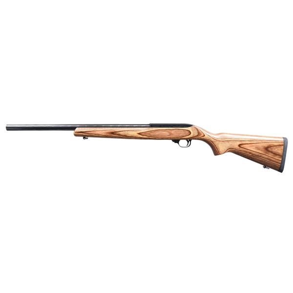 Cal. 22 LR. S# 244-16828. Bbl. 20" target weight hammer forged with spiral exterior pattern having recessed target crown. Mfg. 1996 (1996-2017) with target profile laminated walnut stock having black rubber pad and sling swivels. Earlier 10/22 with alloy trigger guard assembly and flush mag. release. MAGS: 1 factory 10 rd. UNATTACHED ACCESSORIES: matching numbered factory box and packaging. CONDITION: all aspects near excellent with new, unfired appearance. (24-3099/NW). MODERN. $250-400.