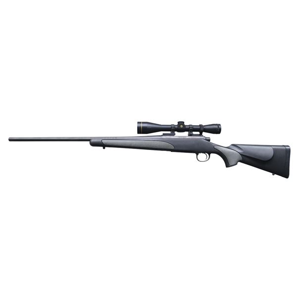 RIFLE. Cal. 223 Rem. S# RR57751C. Bbl. 24". Model 700 bolt action rifle chambered in .223 Remington mfg. by Remington. Left side of the bbl. is marked with Remington's mfg. information, followed by the cal. designation. Left side of the receiver is marked with the S#, followed by "Remington/ MODEL 700". Metal components exhibit a matte blue finish overall, save for on the aluminum trigger guard and hinged floorplate, which exhibit a matte black finish. Black polymer pistol grip buttstock, with textured gray rubber panels. Receiver is fitted with a Leupold VX-2 3-9x40 scope. UNATTACHED ACCESSORIES: generic hard case. CONDITION: metal components retain the majority of their original factory finishes, exhibiting some spots of light wear and thinning, some superficial handling marks, as well as scattered spots of light to mild surface oxidation. Mirror bore, retaining well defined rifling throughout. Stock shows scattered marks from handling and storage, but otherwise remains sturdy and serviceable. Scope shows some superficial handling marks, but otherwise retains a clear and sharp optic. (24-7090/MLW). MODERN. $500-700.