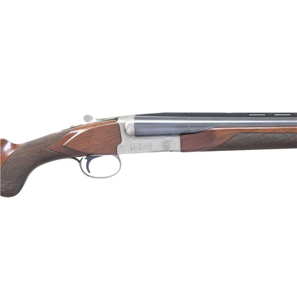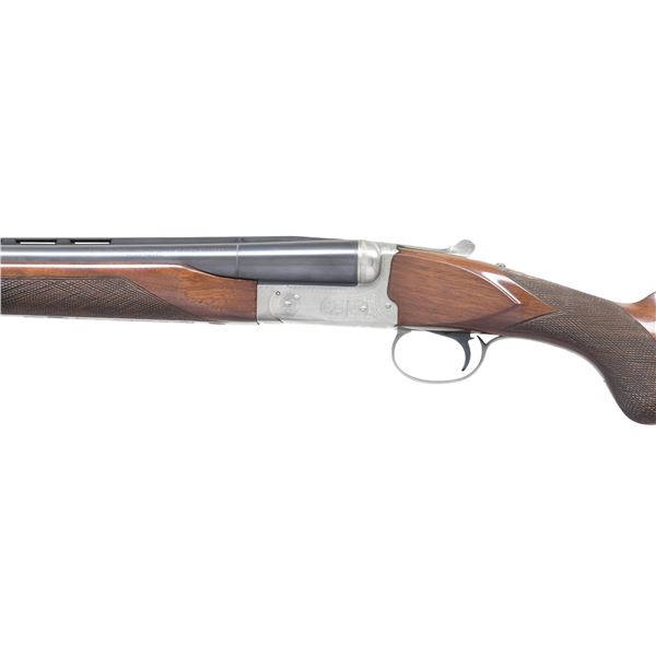 Cal. 12 ga. 3". S# PWK003644. Bbls. 28" w/ vent rib. Fixed Mod & full chokes. White target front sight w/ white mid bead. Satin gray finished boxlock action w/ scroll ornamentation. SST. Selective ejectors. Beavertail forearm & round knob pistol grip stock of nicely grained walnut w/ hand checkering. LOP: 14" over original plastic buttplate & white line spacer. UNATTACHED ACCESSORIES: Winchester green canvas colored luggage case containing case keys. CONDITION: over 98% metal finish showing small handling marks on bbls. Original wood finish shows scattered light scratches & marks. Very good bright bores. (25-775/DS). MODERN. $1,500-2,000.