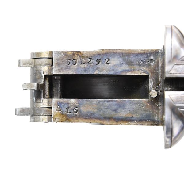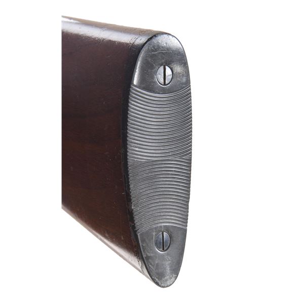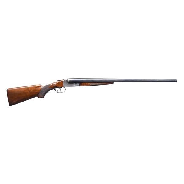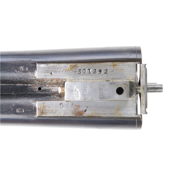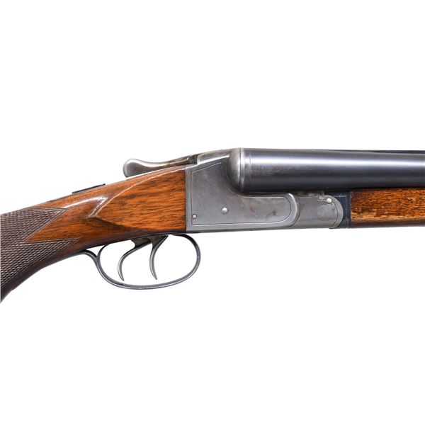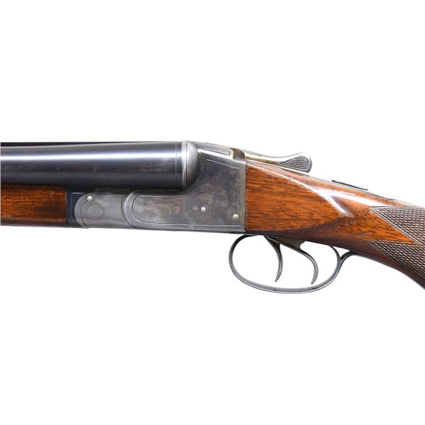 SHOTGUN. Cal. 16 Ga., 2 3/4". S# 301292 (1935). The 26" barrels have brass bead. Mod & IC chokes. Case colored boxlock action with double triggers, extractors & top tang safety. Checkered walnut forearm with J Hook release & ebony tip; matching numbers on inside of forearm. Checkered walnut pistol grip stock with grip cap. LOP: 13 1/4" to grooved hard rubber buttplate. CONDITION: Very good barrel blue with light marks & scattered spots of pinprick patina. Receiver silvering in carry areas with balance having faded case colors. Good wood with areas of peeling varnish & handling marks. Shiny bores with light fouling. (25-531/MD). CURIO. $500-800.
