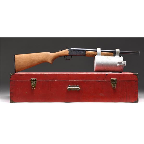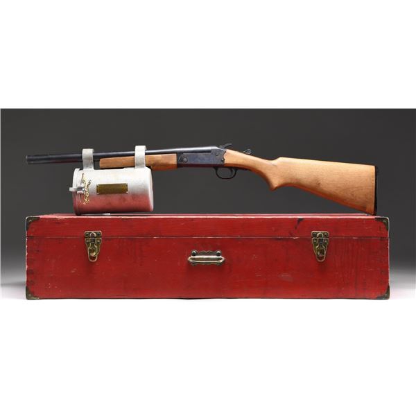 Cal. 12 Ga. S# B264486. Originally made with 45-70 barrel, comes with replacement Savage 220 barrel cut down to 18 1/2" barrel. Blued barrel & case colored action. Ejector. Hardwood stock set. UNATTACH ACCESSORIES: Wooden case marked "SATURN" on lid. Case includes cord canister, brass rods, wooden dowels. CONDITION: very good metal & wood finish with light handling marks. Original forearm is ill-fitting to replacement barrel. Shiny bore. (25-946/MD). MODERN. $400-600.