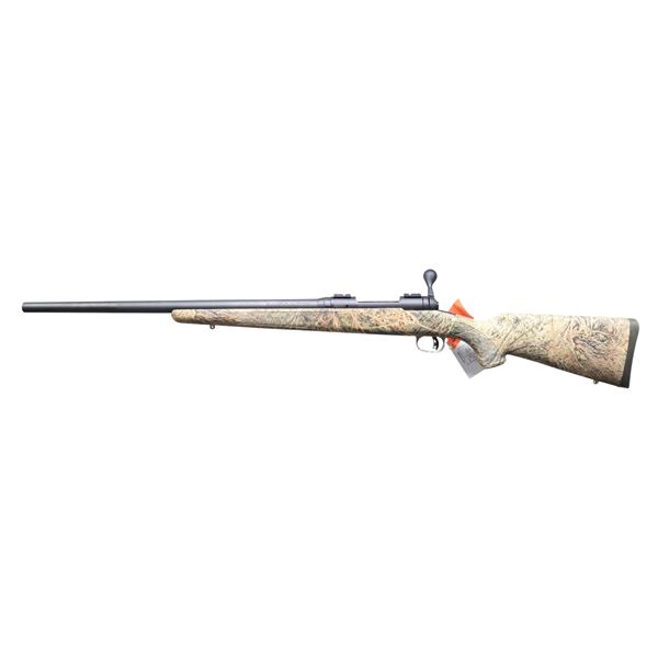Cal. 7mm-08 Rem. S# G591337. Bbl. 22"; sightless, heavyweight. Action features top tang safety, Accutrigger, blind box mag., and Weaver scope bases. Matte black metal finish. Synthetic stock with camouflage finish, scope bases, and solid pad. UNATTACHED ACCESSORIES: original box containing instruction manual, test target, ear plugs, and safety lock. CONDITION: as-new, with box. (24-3299/DS). MODERN. $300-500.