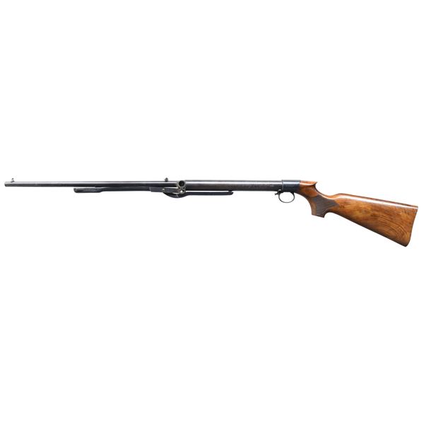 Cal. .22. S# 50914. Barrel 19.5". Walnut checkered buttstock. CONDITION: Missing parts include lever hinge pin, buttplate, trigger & internal spring. Metal has good blue with spots of oxidation. Fair wood finish with marks. (02-23781/MD). $100-200.