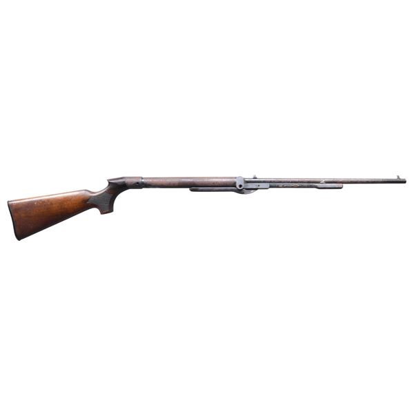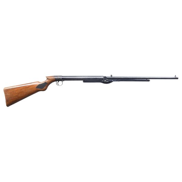MFG. 1919-1939. 1) No. 2 STANDARD. Cal. 22. S# S11323. Single Shot Spring piston action with lever operated tap loading. Bbl. 20". Blade front & notch rear sight. Walnut buttstock with press checkered grip & grooved buttplate. CONDITION: fair blue mixed with peppery oxidation throughout barrel, lever & receiver. Wood shows varnish with numerous marks, dents & white pain spots showing fading finish around buttplate. Shiny bore with strong rifling. 2) No. 2 STANDARD. Cal. 22. S# S7699. Single Shot Spring piston action with lever operated tap loading. Bbl. 20". Blade front & notch rear sight. Walnut buttstock with press checkered grip & grooved buttplate. CONDITION: Good blue showing light marks. Fair wood finish showing gouges, scuffs & marks. Shiny bore. 3) IMPROVED MODEL D PARTS . Cal. .22. S# 50096. Barrel 20". Blade front sight & missing rear sight parts. Walnut stock with ill fitting steel buttplate. CONDITION: missing loading port parts, spring piston & other small parts. Metal shows heavy oxidation throughout. Wood shows numerous dings. Shiny bore. 4) NO. 1 LIGHT. Cal. .177. S# L14203. Single shot spring piston action with lever operated tap loading. Bbl. 17.5". Blade front & Stock mounted aperture ladder rear sight, missing barrel rear sight assembly. Walnut buttstock with press checkered grip & grooved buttplate. CONDITION: good blue with pinprick patina, marks & wear throughout. Wood has added finish with vice marks & small handling marks. Shiny bore. (02-23919-1/MD). $500-750.
