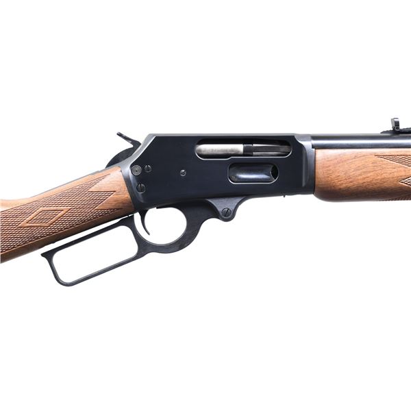 BOX. Cal. 45-70. S# 93038382 (2007). Bbl 18.5". Hooded bead front sight and folding elevator rear sight. Crossbolt safety. Checkered walnut stock with black ventilated pad. UNATTACHED ACCESSORIES: matching box with packaging. CONDITION: all aspects are near excellent, including bore. (24-3636/MD). MODERN. $500-800.