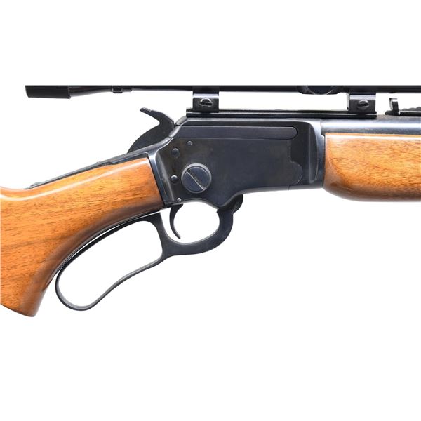 Cal. 22 S, L, LR. S# c544. Barrel 24". Sporting open sights. Weaver D6 scope with duplex reticle on Weaver rings & rail. Tubular mag. Takedown action. Walnut stock set with replacement Herter's buttplate. CONDITION: very good reblued metal finish. Good sanded & refinished wood with marks. Very good bore. Scope has good finish with lightly cloudy optics. (25-990/MD). CURIO. $300-450.