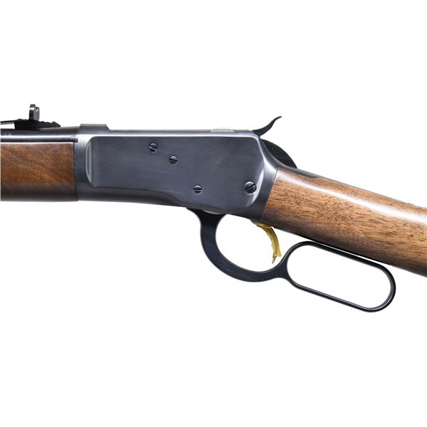Cal. 44 Mag. S#. 05774PM167. Bbl. 20". Pinned blade front sight with sporting rear sight. Blue finish with gold plated trigger. Walnut forend & straight grip stock with steel carbine buttplate. Mfg. in Japan. UNATTACHED ACC: original box. CONDITION: near new retaining virtually all finish. Near excellent bore. (25-655/DS). MODERN. $600-1000.