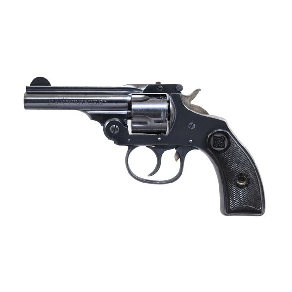 2) H&R PREMIER TOP-BREAK DA REVOLVER. Cal. 32 S&W. S# 493893. Bbl. 3”. Round blade front sight. U-notch rear sight. Blued finish with case colored trigger & hammer. Checkered black grips with target monograms. CONDITION: grips show some dirt staining & handling marks. Metal shows scattered oxidation & fading. Action appears to function properly when hand cycled. Very good bore. (24-7219/MJC) BOTH CURIO. $300-500 for pair.