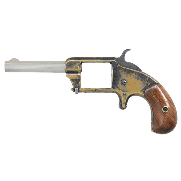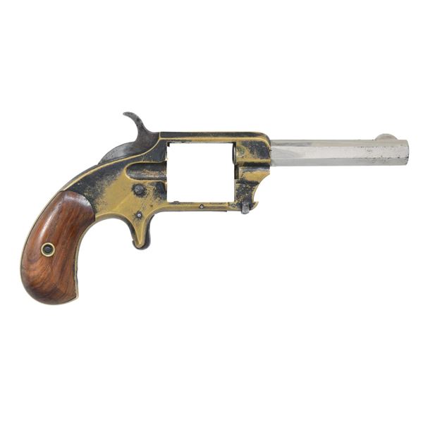 This lot consists of the following revolvers: 1) WHITNEYVILLE NO. 1 Cal. 30 RF. S# 16929. Bbl. 3 3/8". Round blade front sight. Fixed rear sight. Brass frame. Renickeled bbl. Cyl. & ejector rod assemblies missing. Smooth hardwood grips. CONDITION: grips show scattered varnish & handling marks. Bbl. retains most of its renickeled finish with markings appearing faint, scattered oxidation & flaking. Frame is a yellow patina with scattered flaking & oxidation staining. Hammer & trigger are sluggish when hand cycled. Bore shows scattered oxidation but evident rifling. (01-26228/MJC). 2) WHITNEYVILLE NO. 1 SA REVOLVER. Cal. 22 RF. S# 4516A. Bbl. 2 3/8". Round blade front sight. Fixed rear sight. Nickel finish. Smooth hardwood grips. CONDITION: grips have added varnish with some flaking & handling marks. Metal shows scattered flaking, oxidation & varnish overrun. Action appears to function when hand cycled. Pitted worn bore. (01-26229/MJC). BOTH ANTIQUE. $150-250 for pair.