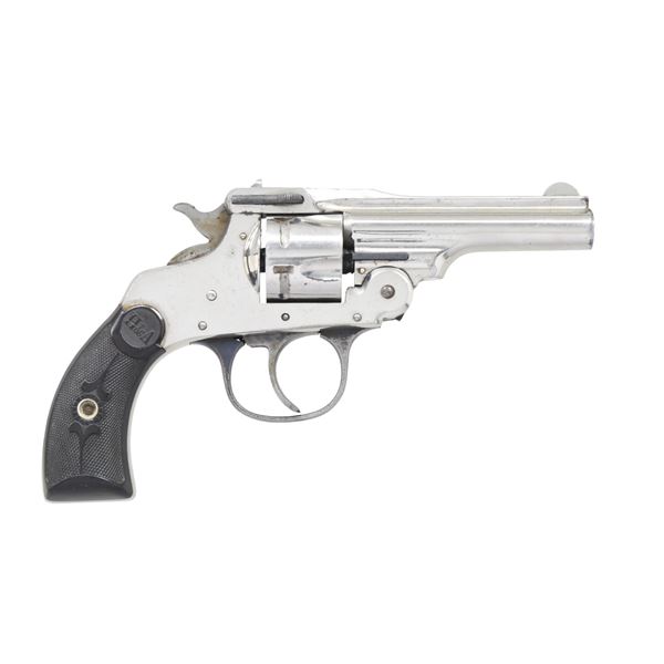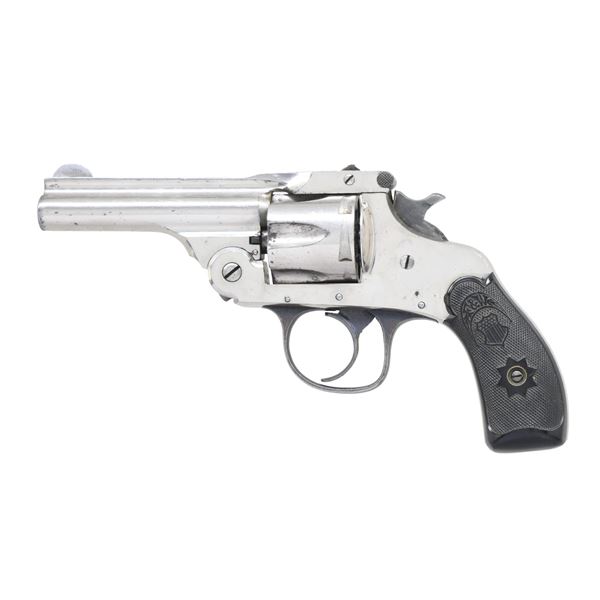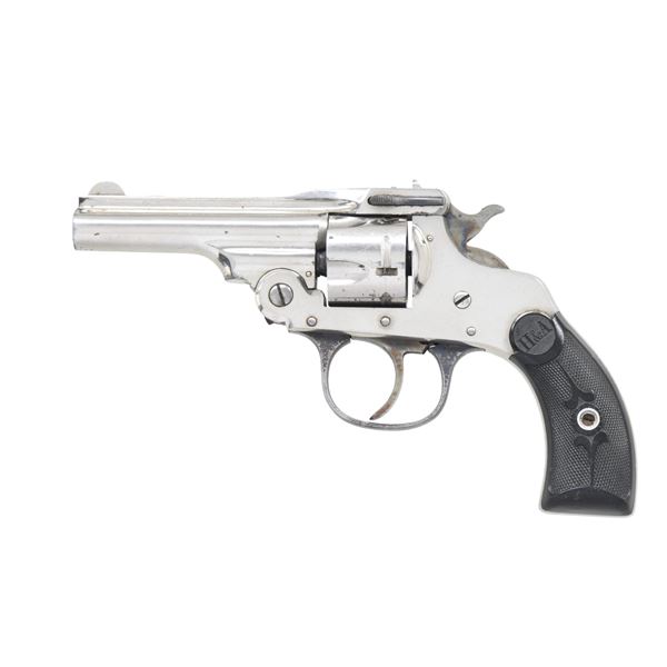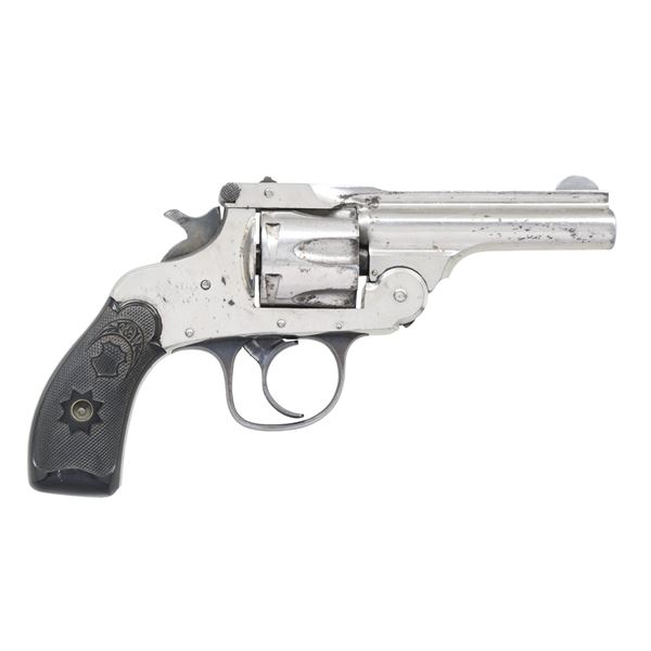ALL: cal. 32 S&W. Nickel finish. 1) HOPKINS & ALLEN SAFETY POLICE. S# 3310. Barrel 3". Matching numbered 5 shot fluted cyl. & extractor. Two piece hard rubber grips. CONDITION: Good nickel. Triggerguard has traces of blue with mostly gray patina. Good grips. Strong rifling with areas of pitting. (24-7187/MD). 2) FOREHAND ARMS CO. S# 280410. Barrel 3.25". Matching numbered 6 Shot fluted cyl. & extractor. Rebounding hammer in frame. Two piece hard rubber grips. CONDITION: good nickel. Fair triggerguard blue. Good grips. Fair bore with pitting. (24-7244/MD). ALL CURIO. $200-400.