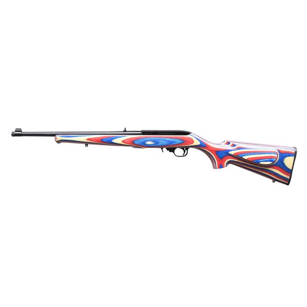 Cal. 22 LR. S# 2021-0564. Bbl. 16.12" with banded brass bead front sight and folding leaf rear; muzzle factory threaded 1/2"-28 with knurled thread protector. Shipped 2021 as Model 31162 being a Talo Distributor's exclusive having extended magazine release, distinctive red / white / blue laminated stock with smooth faced black rifle style buttplate, right side of butt area has laser engraved spread eagle, raised cheekpiece on left of butt, schnable tip on forend plus sling studs. Unusual serial number with year of manufacture as prefix followed by 4 digits rather than the usual 5 digits. MAGS: 1 factory 10 round. UNATTACHED ACCESSORIES: original factory box with packaging. CONDITION: all aspects near excellent, appearing new and unfired. (24-3181/NW). MODERN. $300-450.