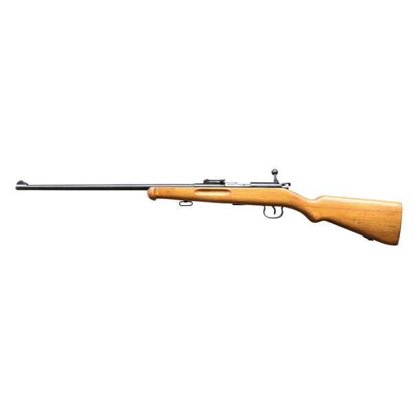 Cal. 22 LR. S# 36324 (1966). Barrel 23". Blade front sight & tangent rear sight. Hardwood stock with grooves in forearm & sling swivels. MAGS: 1 - 5 rd. CONDITION: Very good overall appearance with several deep marks in stock. Shiny bore with strong rifling. Shiny bore with strong rifling. (24-6922/MD). MODERN. $150-250.
