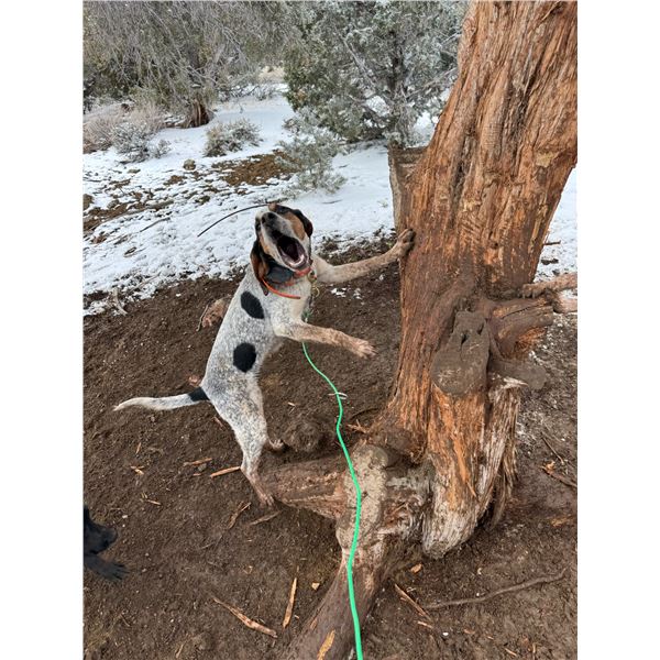 Joe is currently trailing on his own when he finds scent and is a phenomenal tree dog for his age. He has been to multiple trees and making full races, contributing in those races and will be hunted and worked with daily until sale date. Joe is built very well and should be a mid sized tough footed dog.