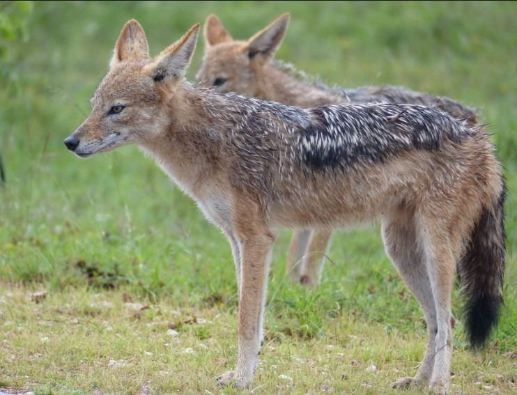 • The following trophies: 1x blue or black wildebeest, 1x common blesbuck, 2x common springbuck, 1x steenbuck, 1x warthog, 1x impala, and 1x jackal—totalling 8 animals shared between the two hunters.