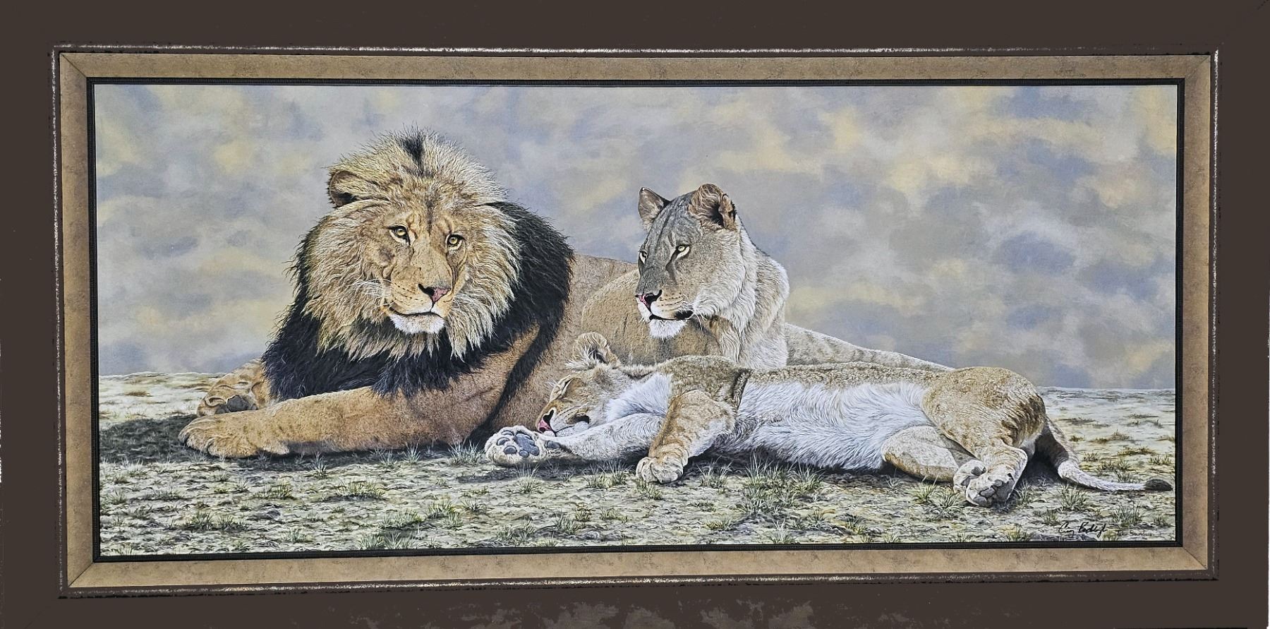 Dr. Gerald Warnock has donated this remarkable one-of-a-kind oil painting of a Pride of Lions from his private collection. It would be a fine addition to any home or trophy room.