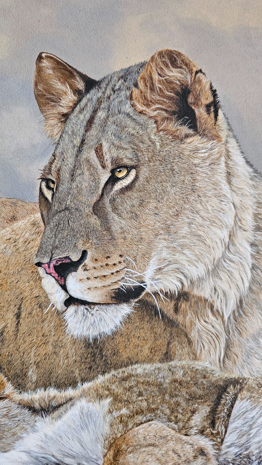 #9 Lot 108 Framed Tyler Saunders Lion Painting signed by Craig Boddington