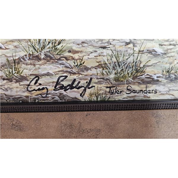 This painting is one of five of the Big Five collection by Tyler Saunders and signed by Craig Boddington.