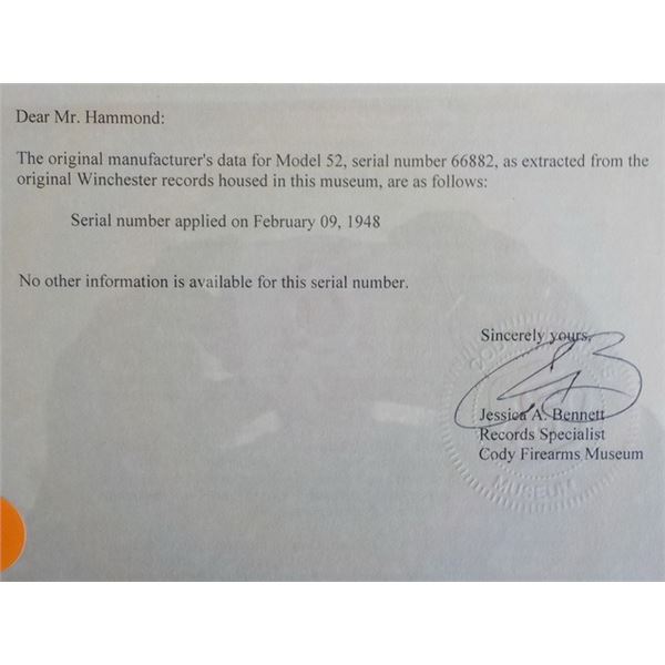 Winchester mod. 52 Deluxe Sporter 22 L Rifle bolt act. rifle w/ Lyman peep sight (1949) #66882B