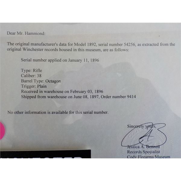Winchester mod. 1892 38 W.C.F. lever act. rifle w/ 24 ½” octagon barrel (1894) #54256