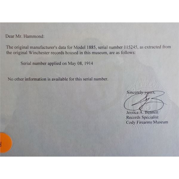 Winchester mod. 1885 low wall 32 W.C.F. lever act. rifle w/ 28” octagon barrel & amp; period correct Winchester scope (1919) #115245