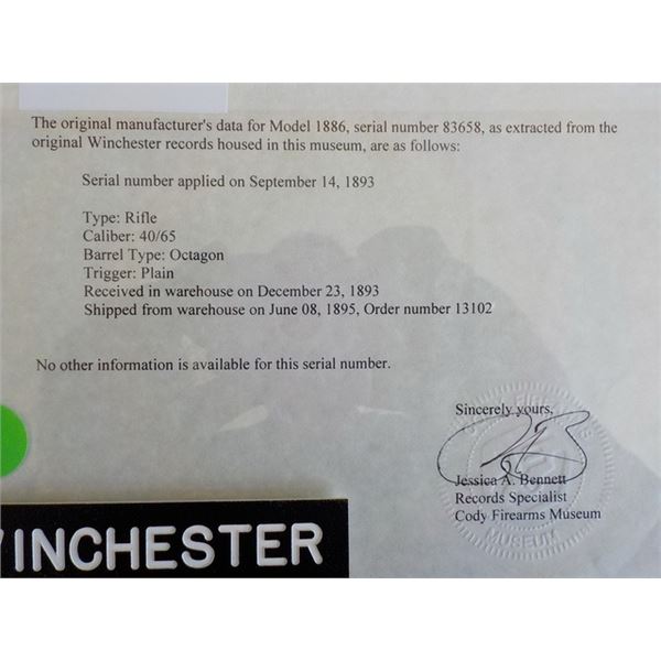 Winchester mod. 1886 40-65 W.C.F. lever act. rifle w/ 26” octagon barrel (1893) #83658