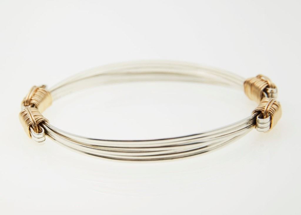 Lot 10 Two-toned bracelet with an exquisite combination of Argentium Sterling Silver strands & 14 KGF knots