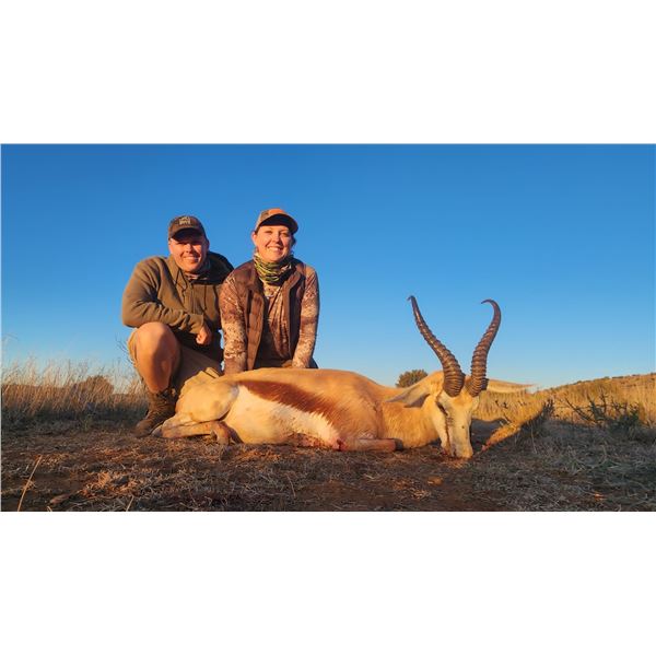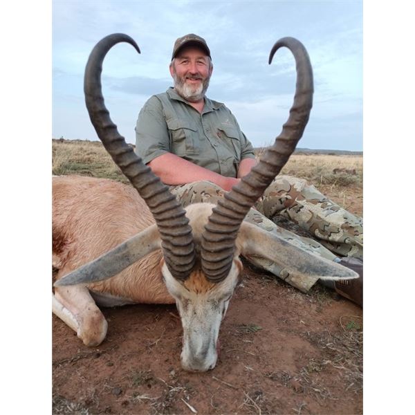 Exciting safari adventure for 2x first-time hunters and their non-hunting companions in South Africa. Set within a 30,000-hectare area in central South Africa, you will have the chance to pursue over 30 different plains game species. Your hunting package includes the following trophies: 1x blue or black wildebeest, 1x common blesbuck, 2xcommon springbuck, 1x steenbuck, 1x warthog, 1x impala, and 1x jackal totalling 8 animals shared between the two hunters. A professional hunter, along with an experienced skinner and tracker, will be with you every step of the way to ensure a successful and safe hunt. During your stay, you will enjoy luxurious lodge accommodations complete with full safari staff, wifi, daily laundry, delicious meals. Trophy fees for donated species, and field preparation of your trophies are included. Additional upgrades and extensions are available according to outfitters price list of the year the hunt is taken. Also included is field preparation of trophies; skinning, salting, tag and delivery to taxidermist. Please note that expenses incurred before and after the hunt, firearm clearance, trophy packing and shipping, and gratuities are not included. Also not included are firearms clearance at airport @ $35/firearm each way, 15% VAT tax on value of package, hunting licenses in certain provinces @ $60, rifle hire if needed @ $50/rifle/day plus cost of ammo, flights and accommodations before/after hunt. Plan your safari with the outfitter for open dates in 2025/2026 with Jannie Otto Safaris, +27.83.470.7965, Email: info@jsnnieotto.com, Web; www.jannieotto.com Hunt cannot be combined with another Jannie Otto Safaris donation.
