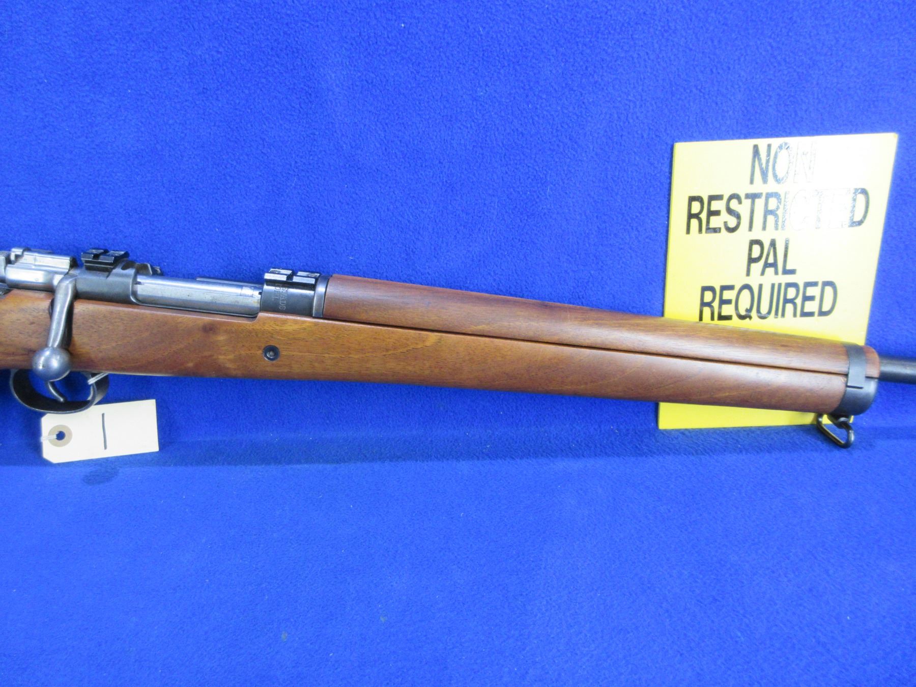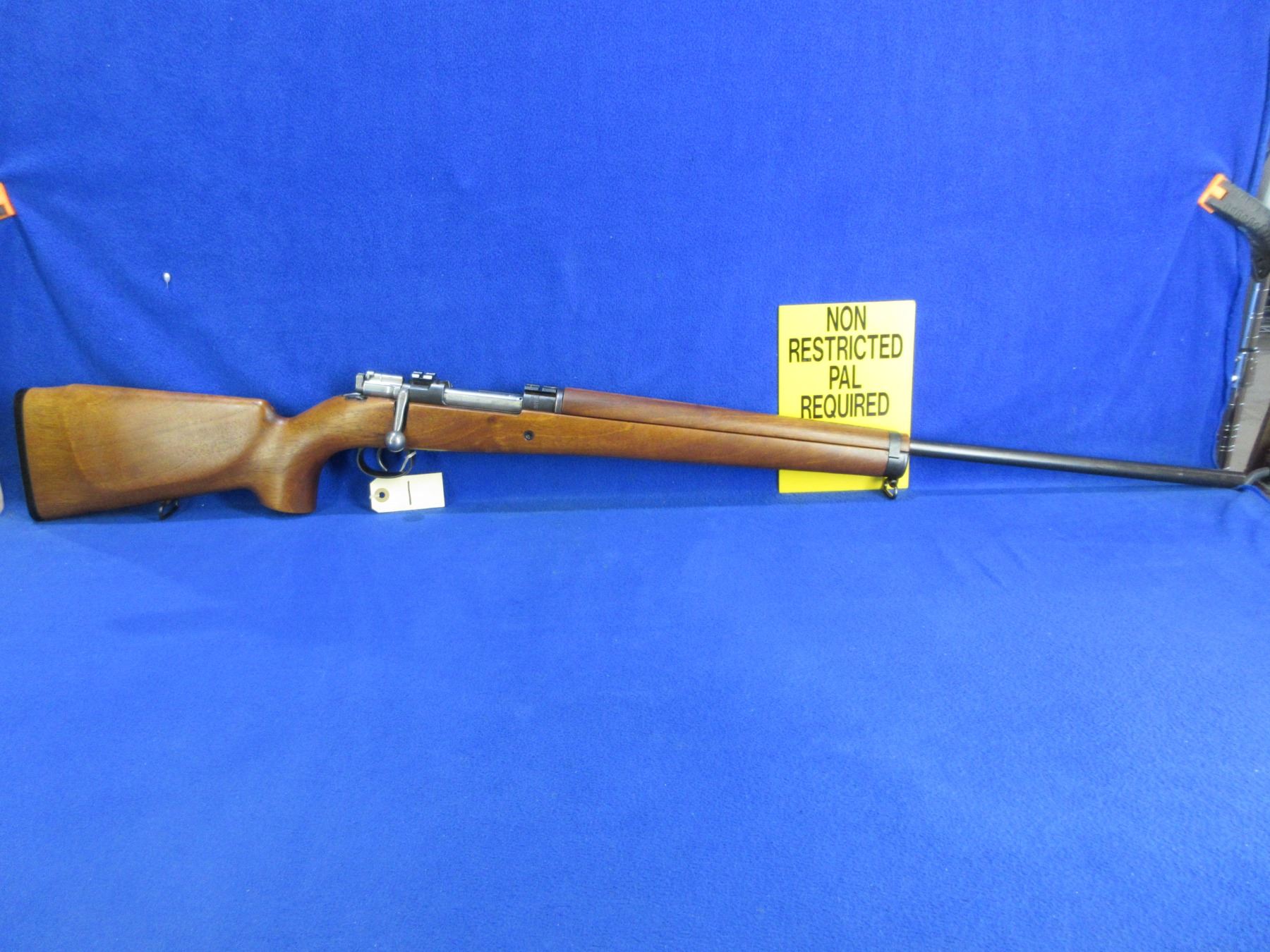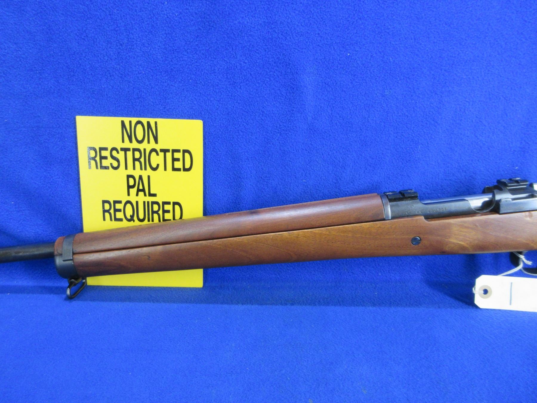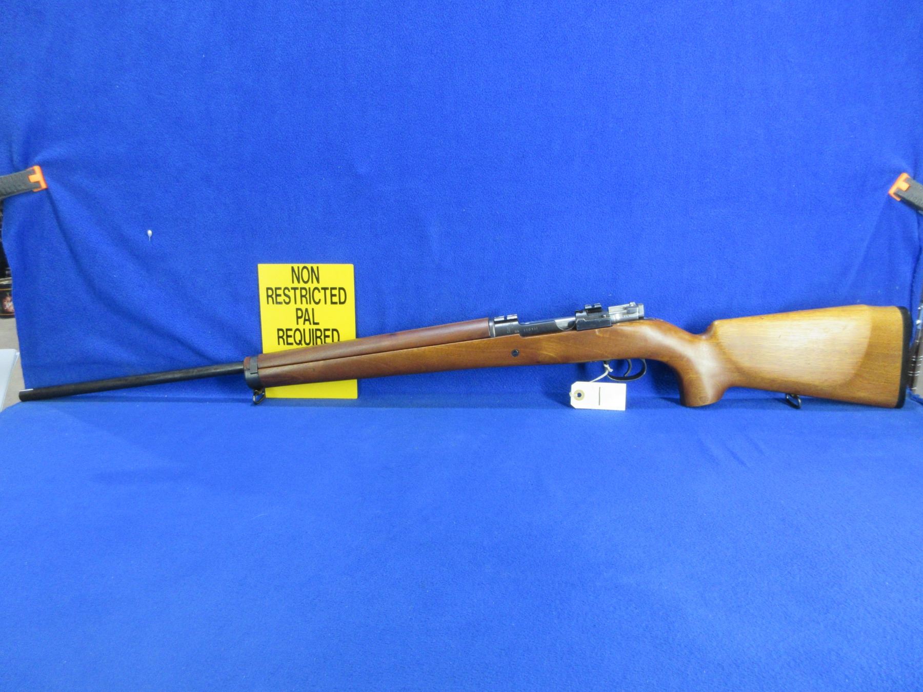 Non-Restricted - Carl Gustaf Model 63 in 6.5x55 - This bolt action rifle with floorplate magazine appears to be in good to very good working order. Barrel is 27", rifling is good to very good, bluing is good but patchy, missing both sights but has Weaver style bases, stock is good with minor usage marks, butt plate good, comes with swivels. Ser #450751
