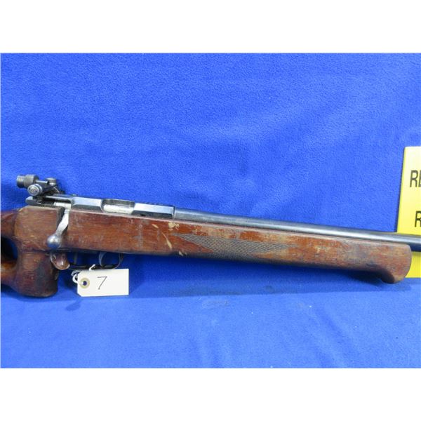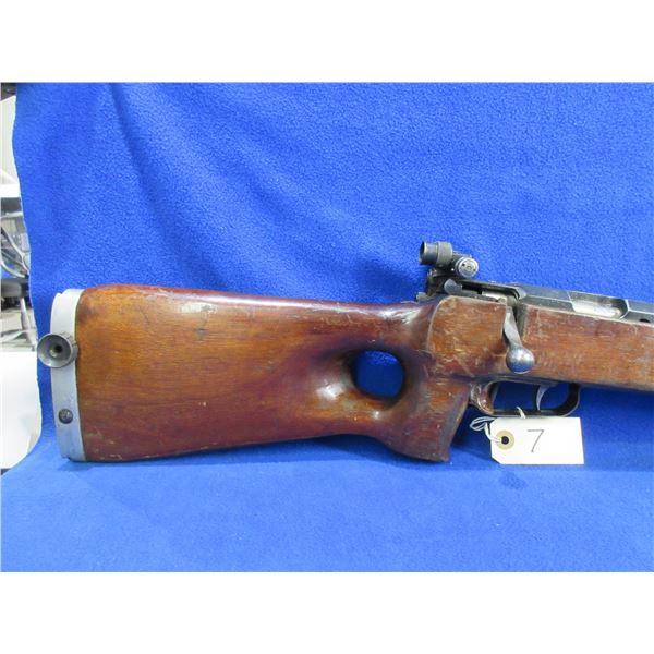 Non-Restricted - Russian TOZ Target Model MU-12 in 22 LR - Made in 1959, this very rare bolt action single shot target rifle appears to be in good to very good working order. Barrel is 29 1/2", rifling is good to very good, bluing is good with wear patches, has both peep sights, stock is good with many usage marks, adjustable recoil pad - missing pad, has double set triggers, comes with rail for palm rest. Ser #NT-395