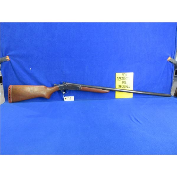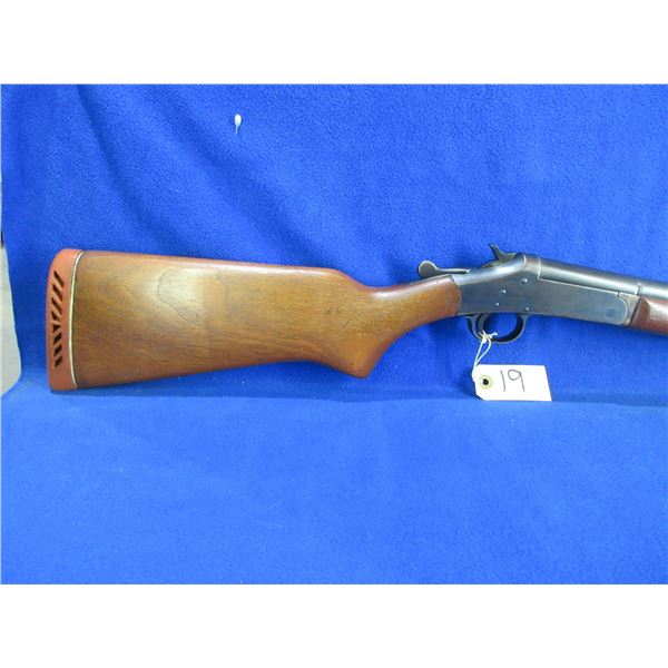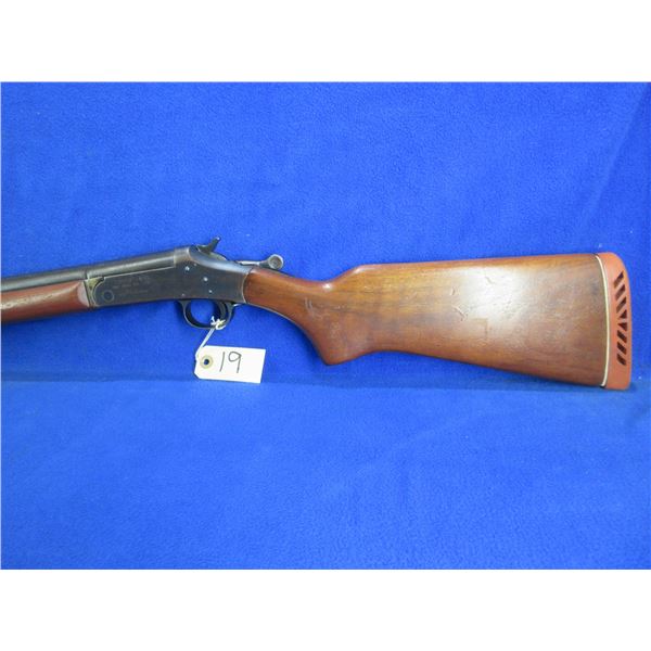 Non-Restricted - Harrington & Richardson Topper-M48 in 12 Ga. 3" - This tip up single shot shotgun appears to be in good working order, action has a small amount of play. Barrel is 30", bore is good, bluing has some very light pitting on the underside of the barrel, has bead front sight, stock has two hairline cracks at top of the wrist area, forearm has a crack on the bottom at the back and is loose, rubber recoil pad fitted incorrectly. Ser # 19711
