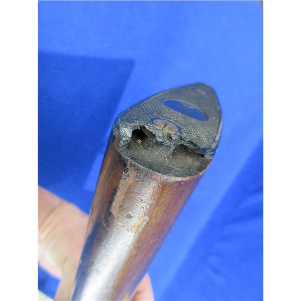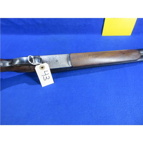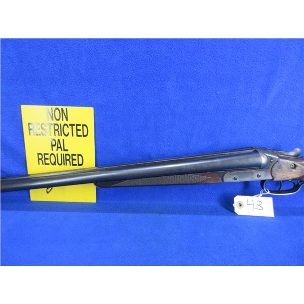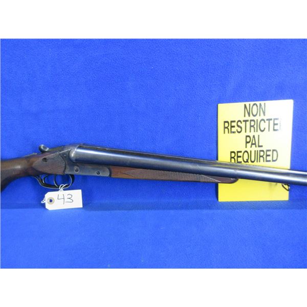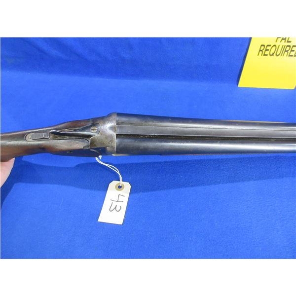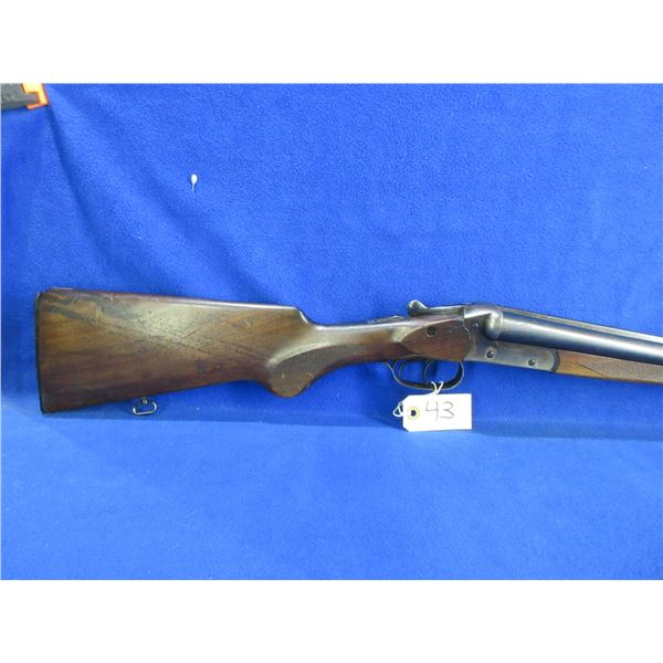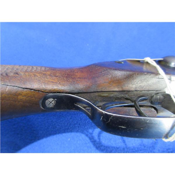 Non-Restricted - Thalman Suhl Model 125 in 12 Ga. 2 3/4" - This tip up SXS shotgun appears to be in working order but should not be fired as stock is cracked and loose, action is tight. Barrels are 28", bores are good, bluing is good with some light pitting, has bead front sight, stock has cracks on top and bottom of wrist area and is loose, forearm is good to very good, butt plate chipped on the heel, comes with swivels. Ser # 813594