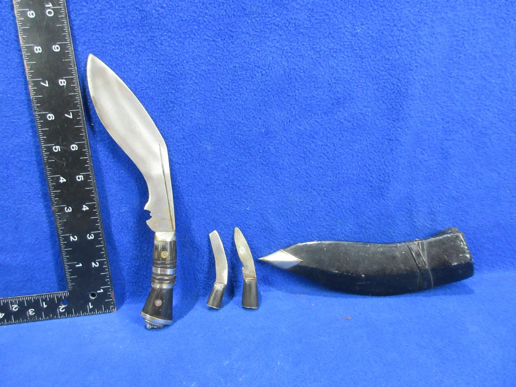 Lot 49 Small Kukri Knife 3 Knife Set with Sheath - 6" Blade