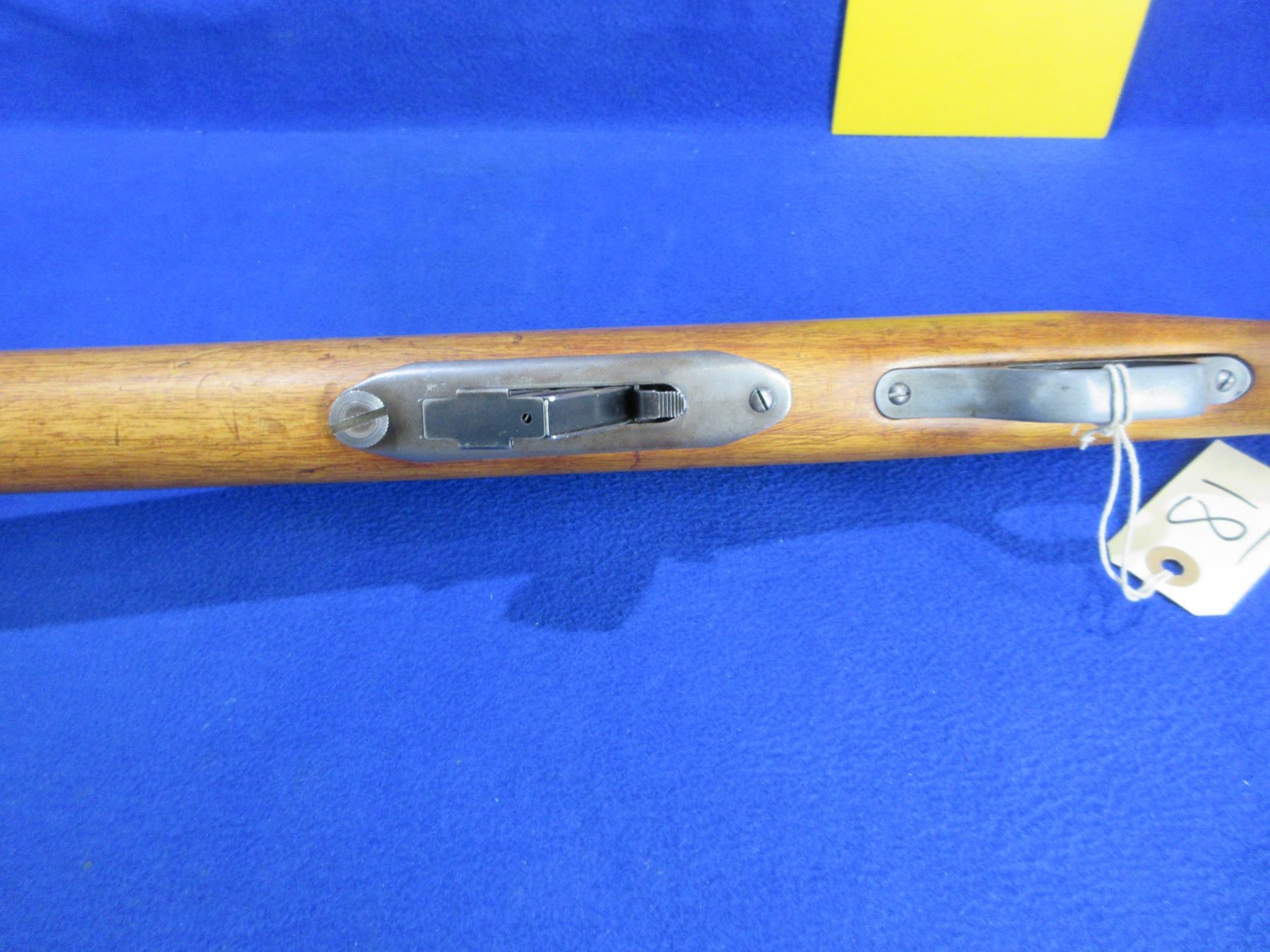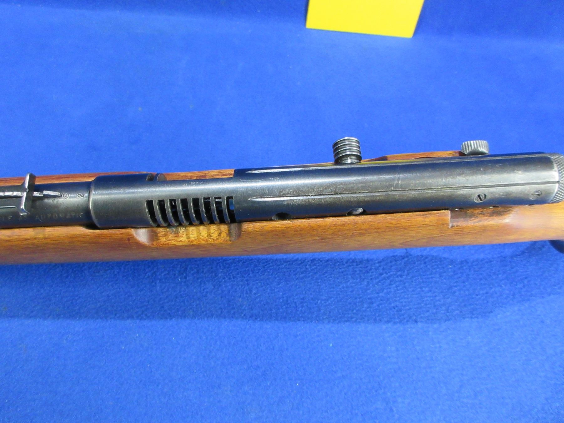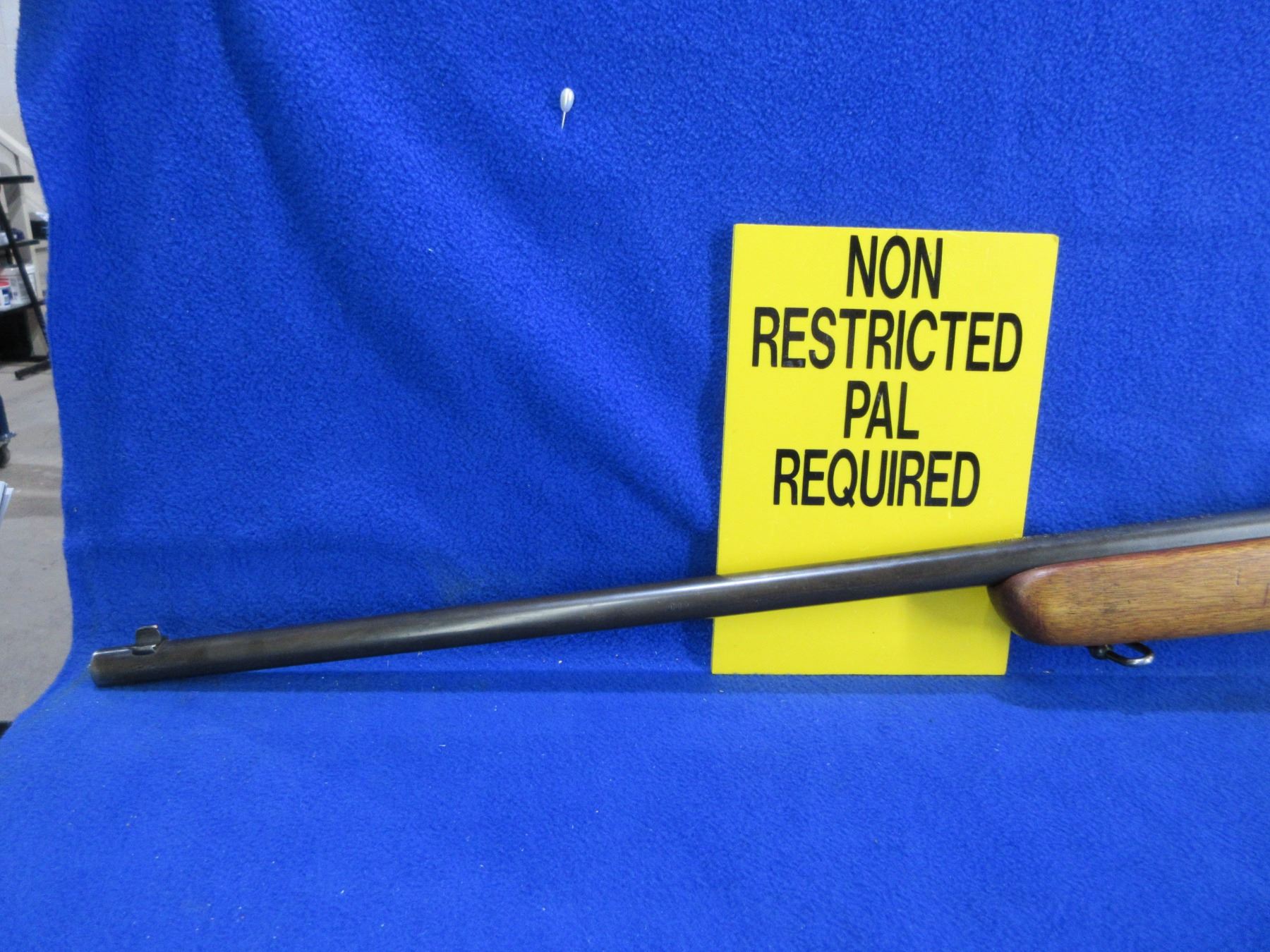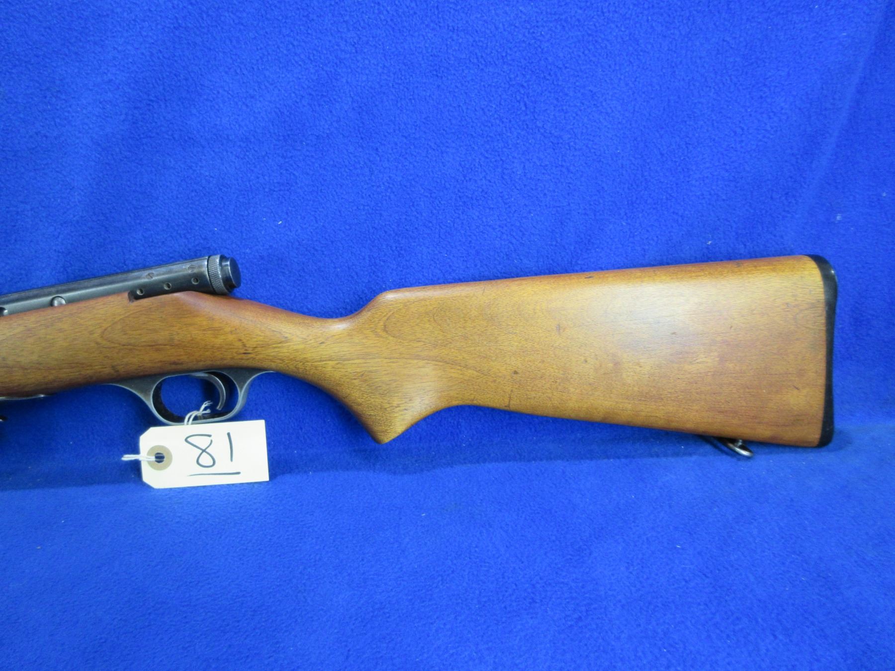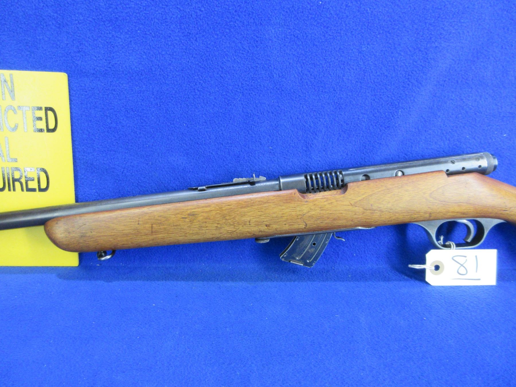 Non-Restricted - Stevens Model 85 in 22 S/L/LR (only LR is automatic)- This semi-auto rifle with removable magazine appears to be in good to very good working order. Barrel is 24" and has a few marks on the left side, rifling is good to very good, bluing is good but turning grey, has both sights, stock is good to very good with usage marks, butt plate good, comes with swivels. Ser # None