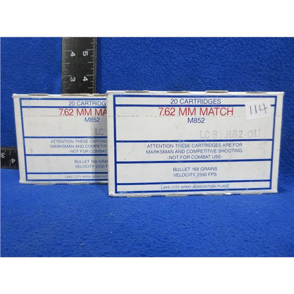 7.62MM Match 168gr Lake City Army Cartridges - 2 Sealed Boxes of 20 - PICK UP ONLY