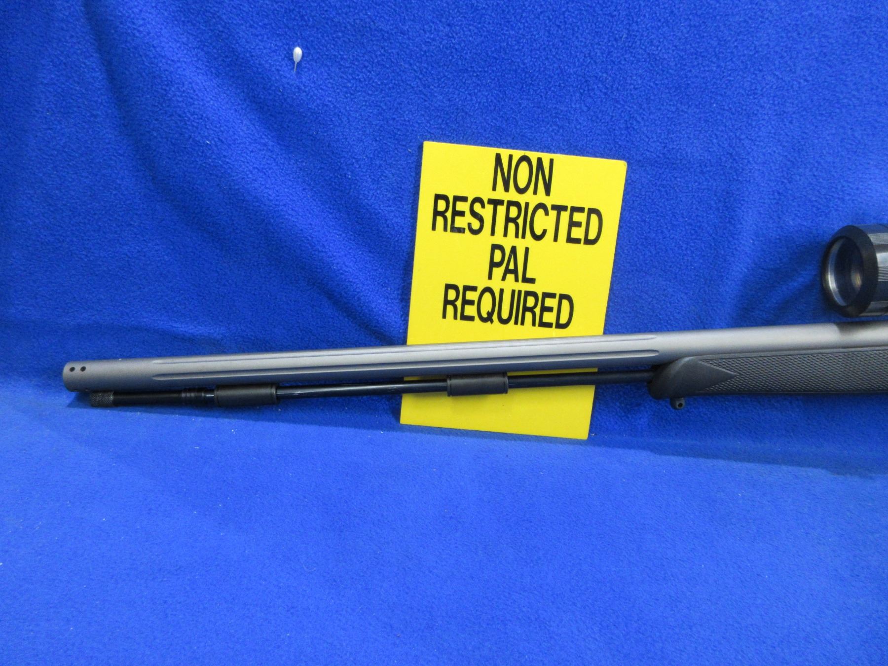 Non-Restricted - Traditions Pursuit in 50 Cal. - This muzzleloading 209 primer rifle appears to be in good to very good working order. Cerakote fluted barrel is 28", rifling appears good to very good, Cerakote finish is good to very good, sights are missing but has Traditions 3.5-10x44 scope - appears clear - range finding duplex style reticle - comes with lens covers, synthetic stock and forearm are good to very good, rubber recoil pad good, comes with swivel studs and ram rod. Ser # 14-13-006188-11