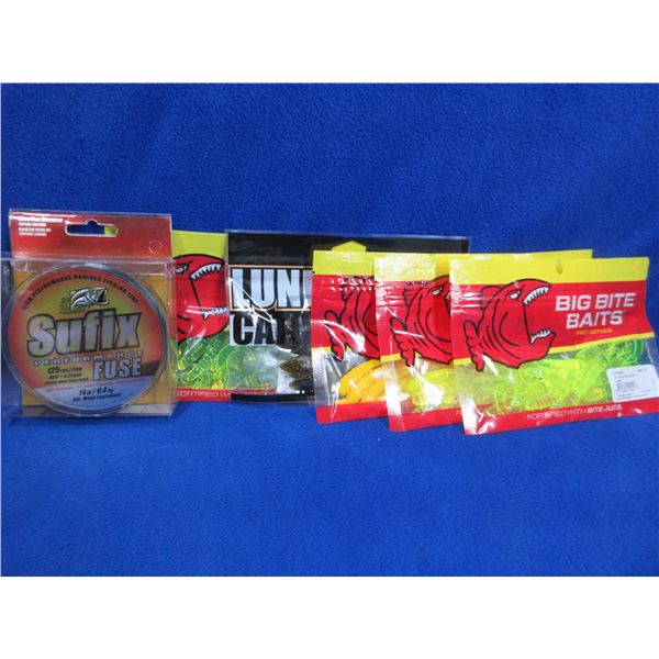 Lot of Misc. - Fishing Bobbers, Lures, Line, Big Bite Baits - Comes with Plano Adjustable Compartment Case