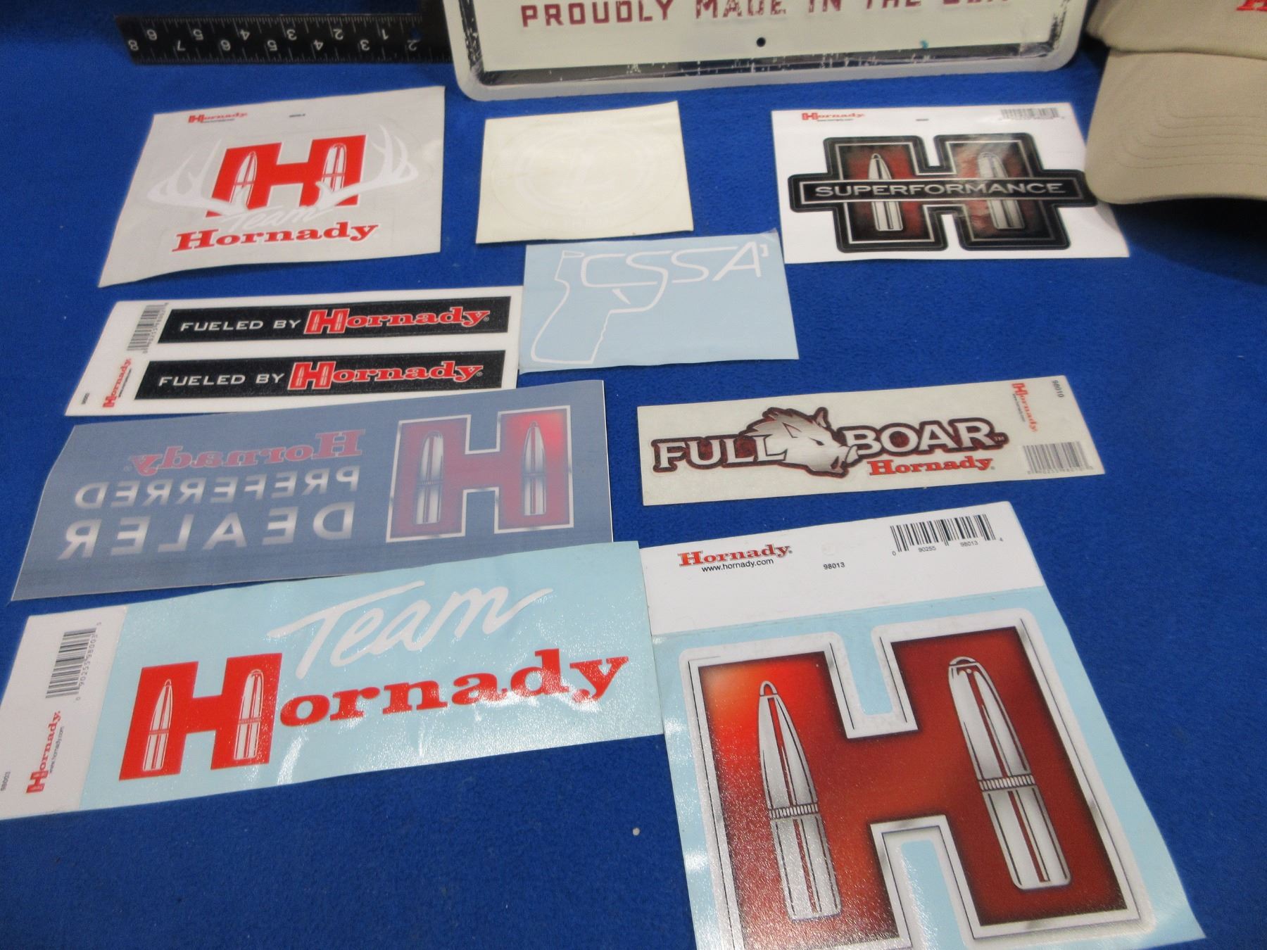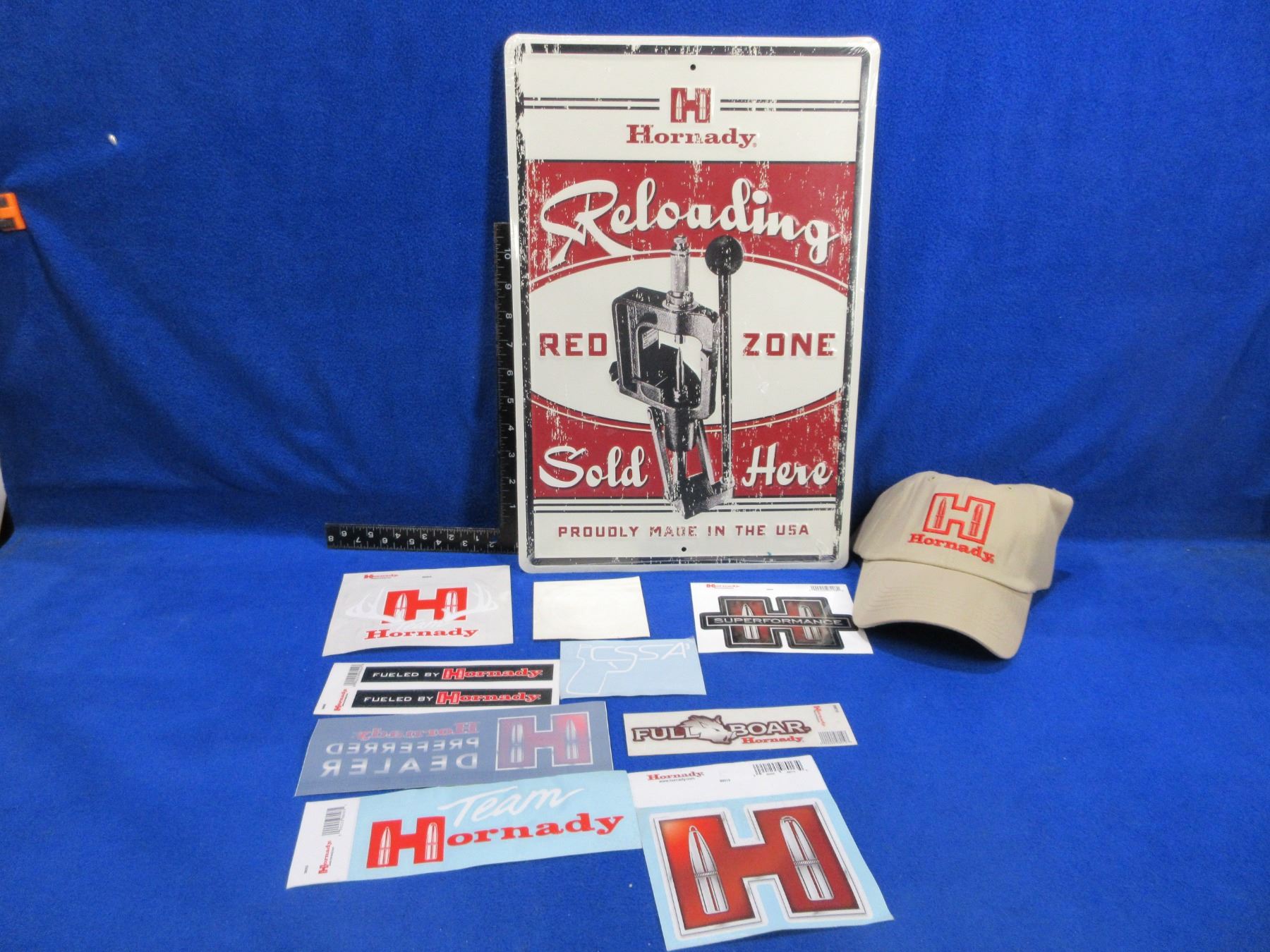 Lot of Misc. Hornady - Sign 18" x 12", Hat and Stickers - Sign and hat are NEW