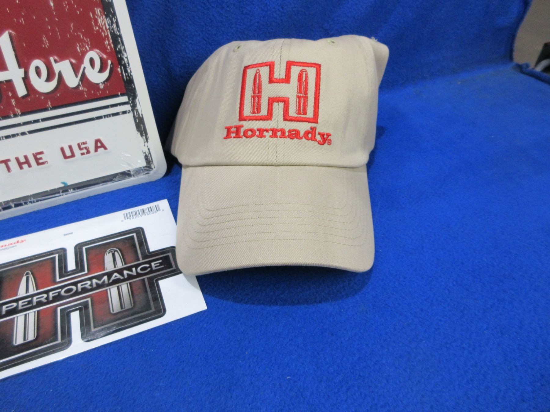 Lot 130 Lot of Misc. Hornady - Sign 18" x 12", Hat and Stickers