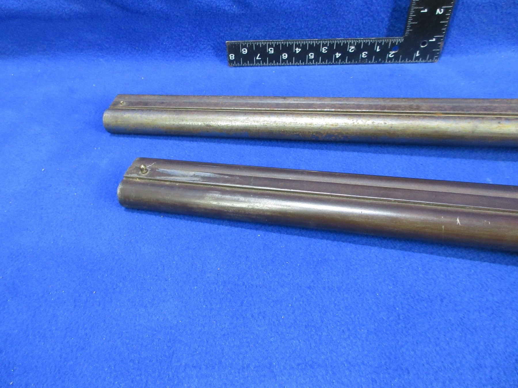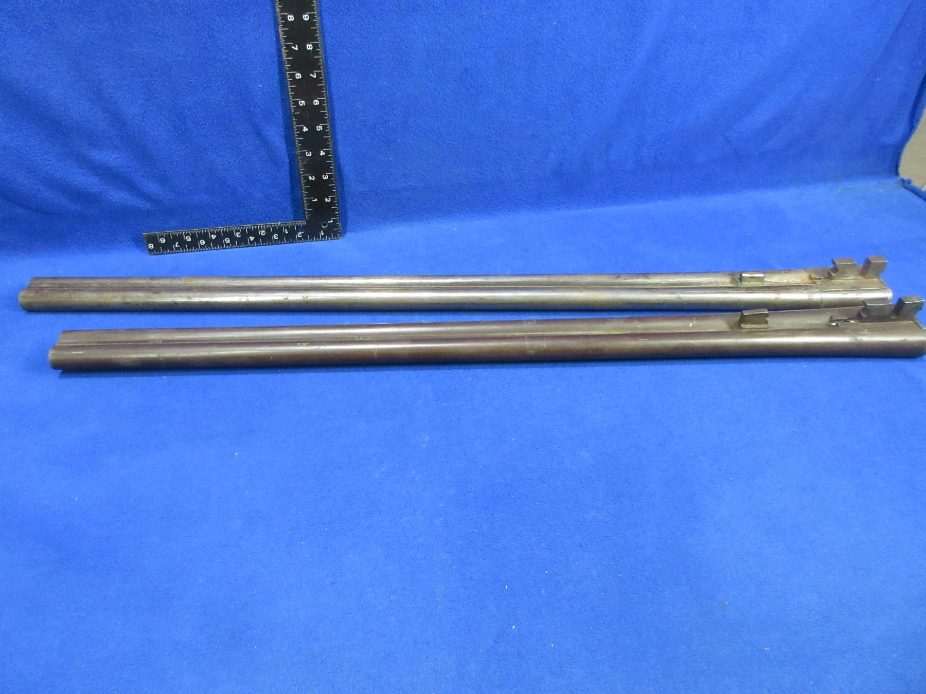 2 SXS Barrels - Belgian and Unknown in 12 Ga. 2 3/4" - Belgian Eclipse Star No. 7212 Barrels are 32", bores are poor, bluing is gone and pitted, has bead front sight. Unknown Barrels are 29 1/2", bores are poor, browning is fair to good, has bead front sight. - PAL Required